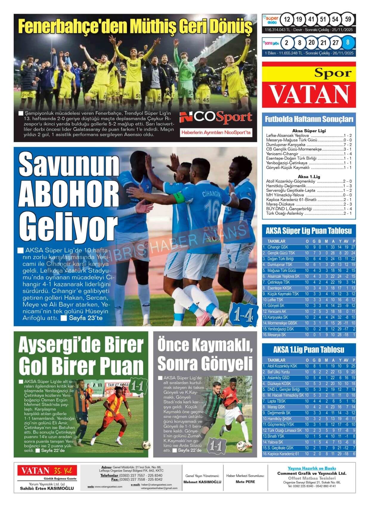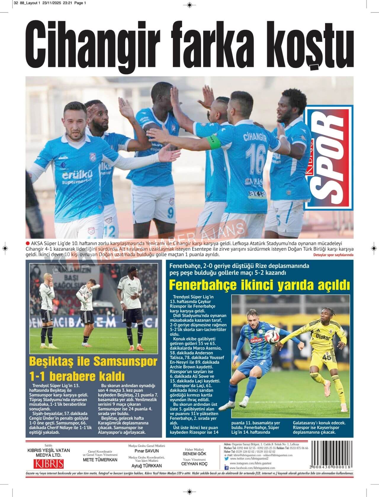 Ana SayfaGazetelerKKTC-TC Gazetelerinde Bugün (24 Kasım 2025)