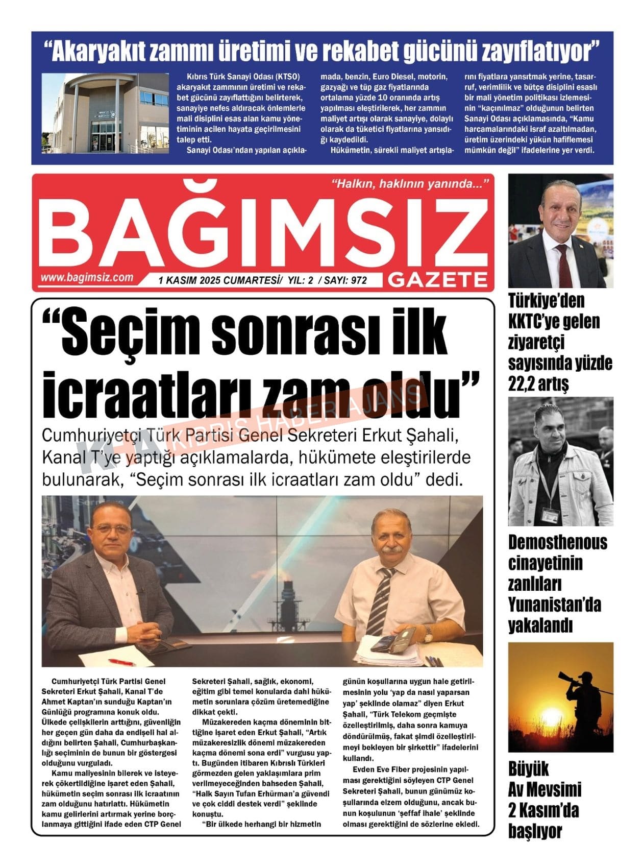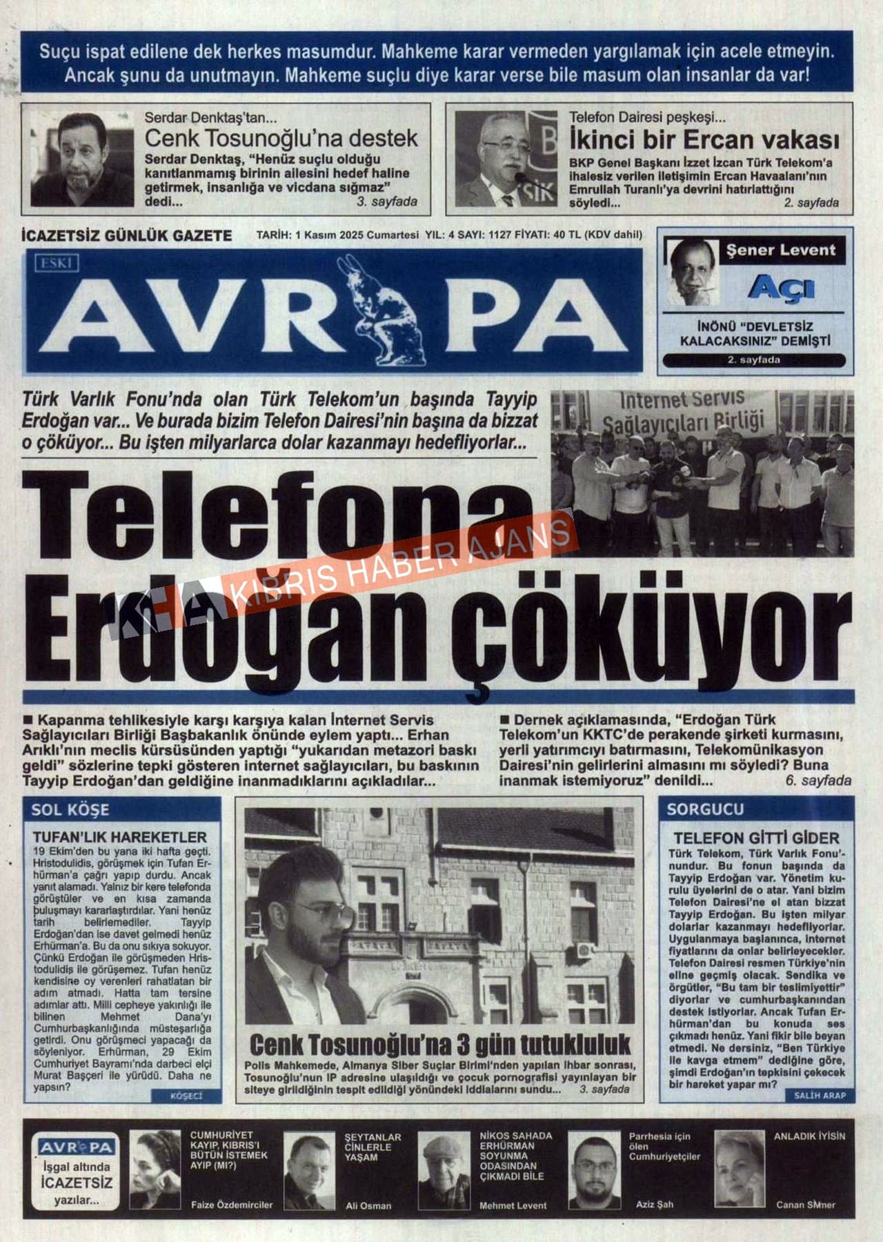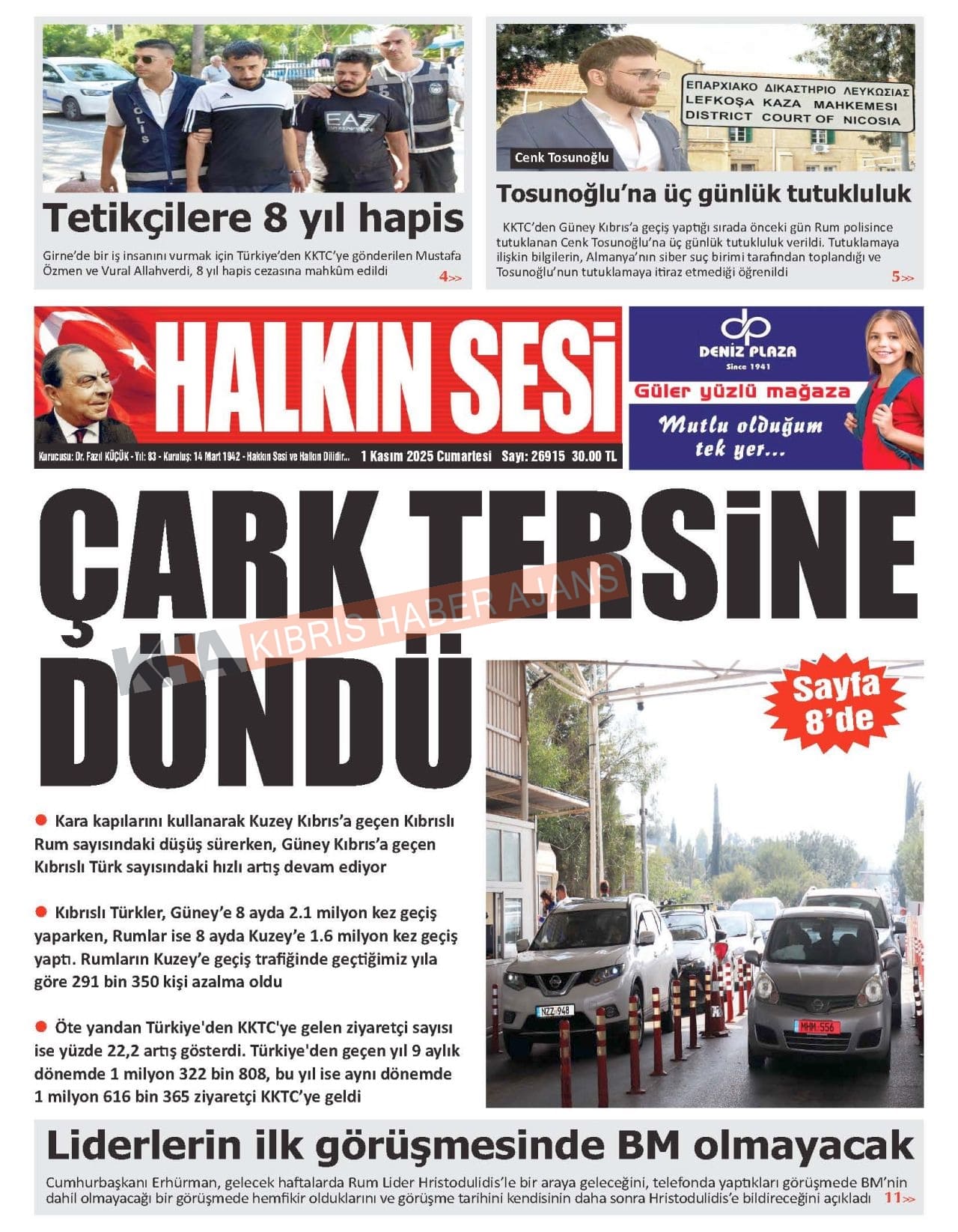 Sitede yayınlanan gazetelerdeki içeriklerden gazete sahipleri sorumludur. Yayınlanan gazeteler ve içeriklerinden Kıbrıs Haber Ajans ve Ajans Cyprus sorumlu tutulamaz.