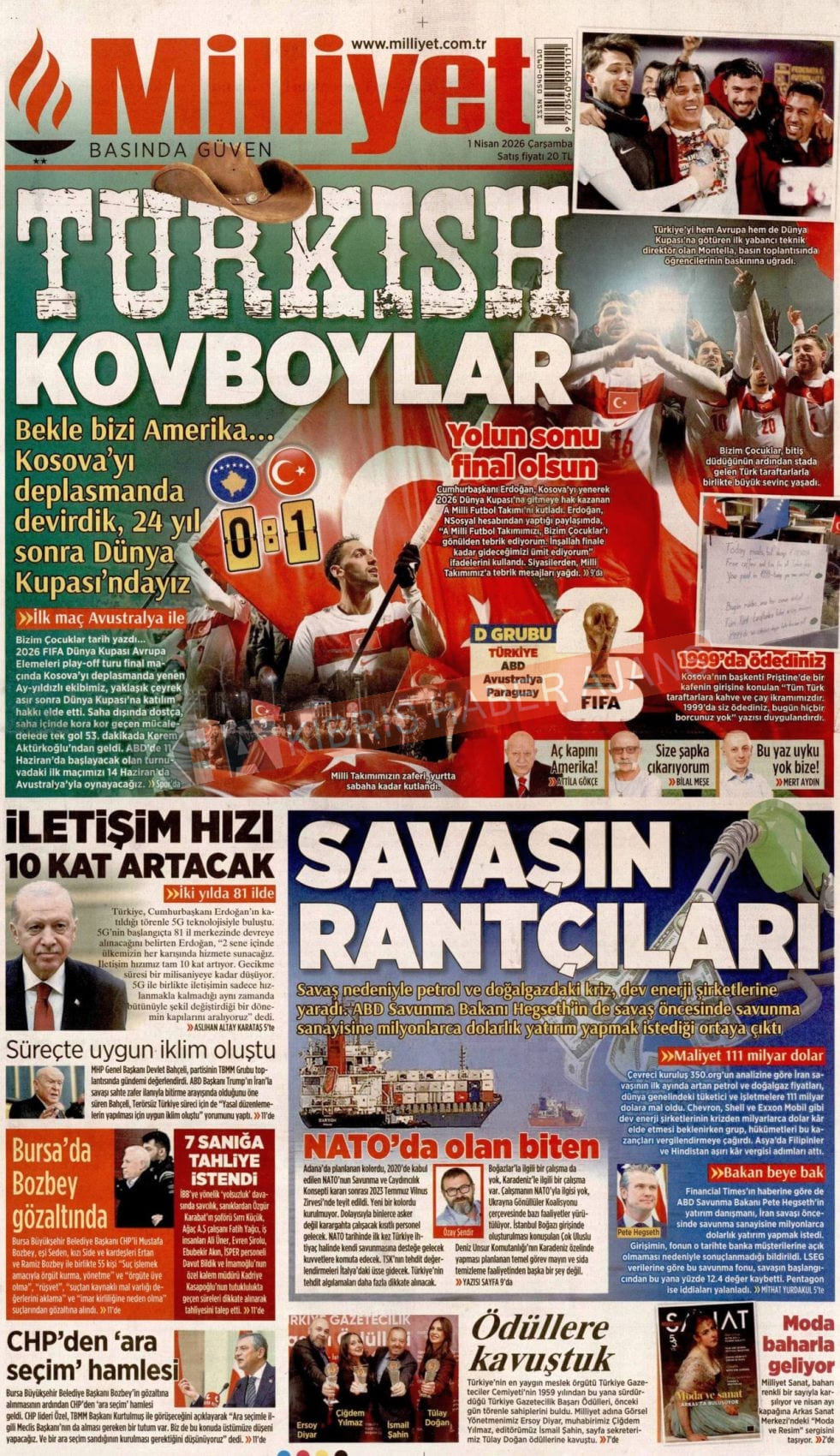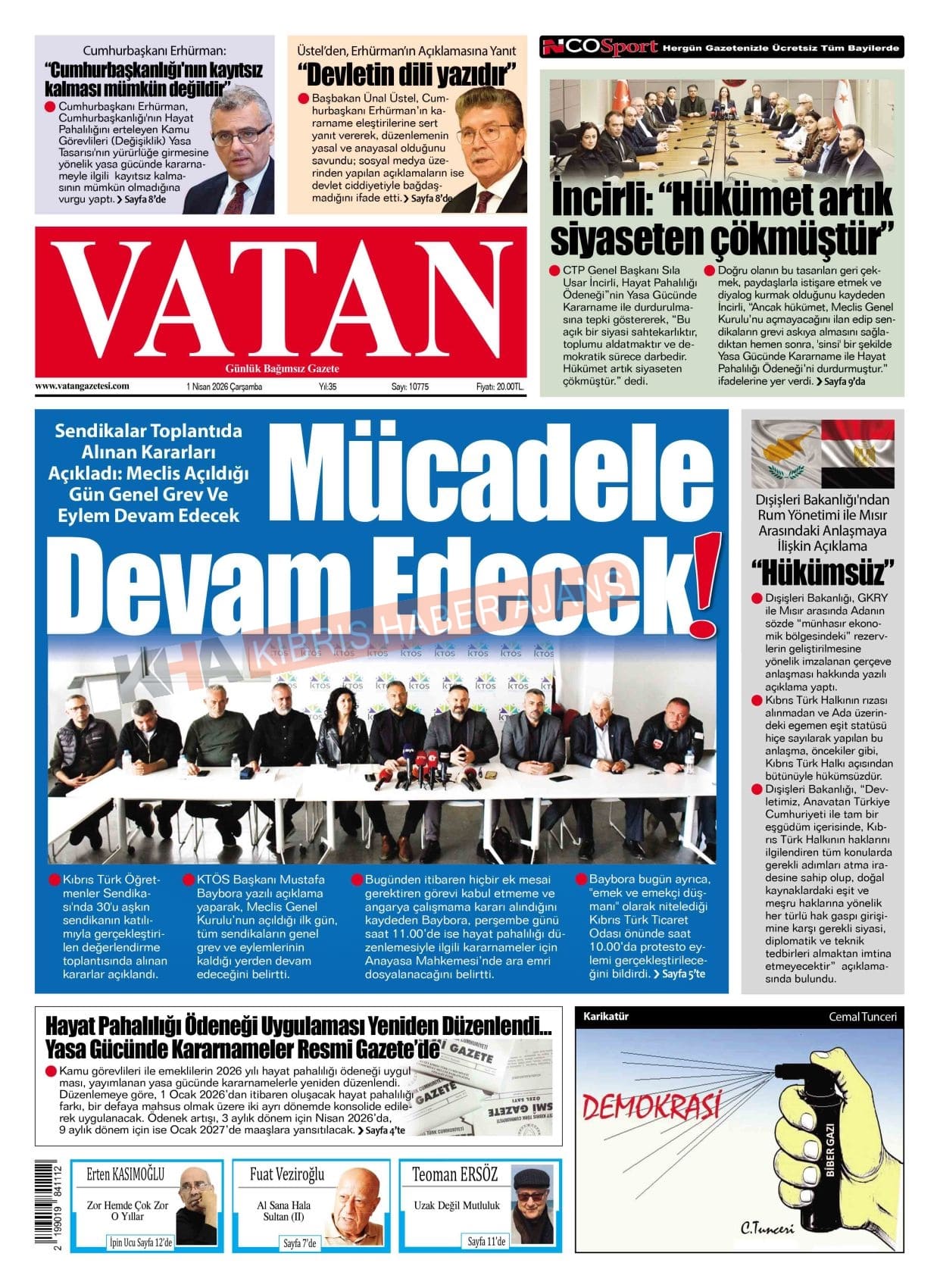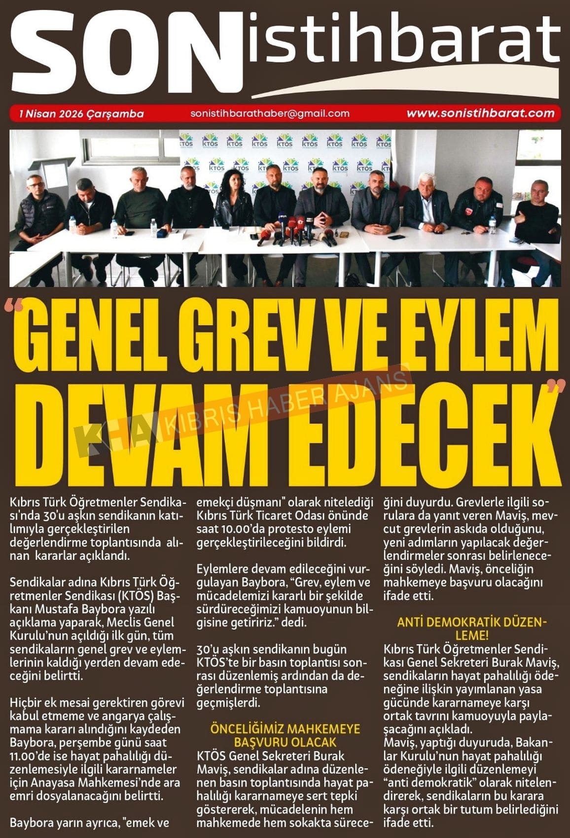 KKTC -TC Gazetelerinde Günün Manşetleri (01 NİSAN 2026)