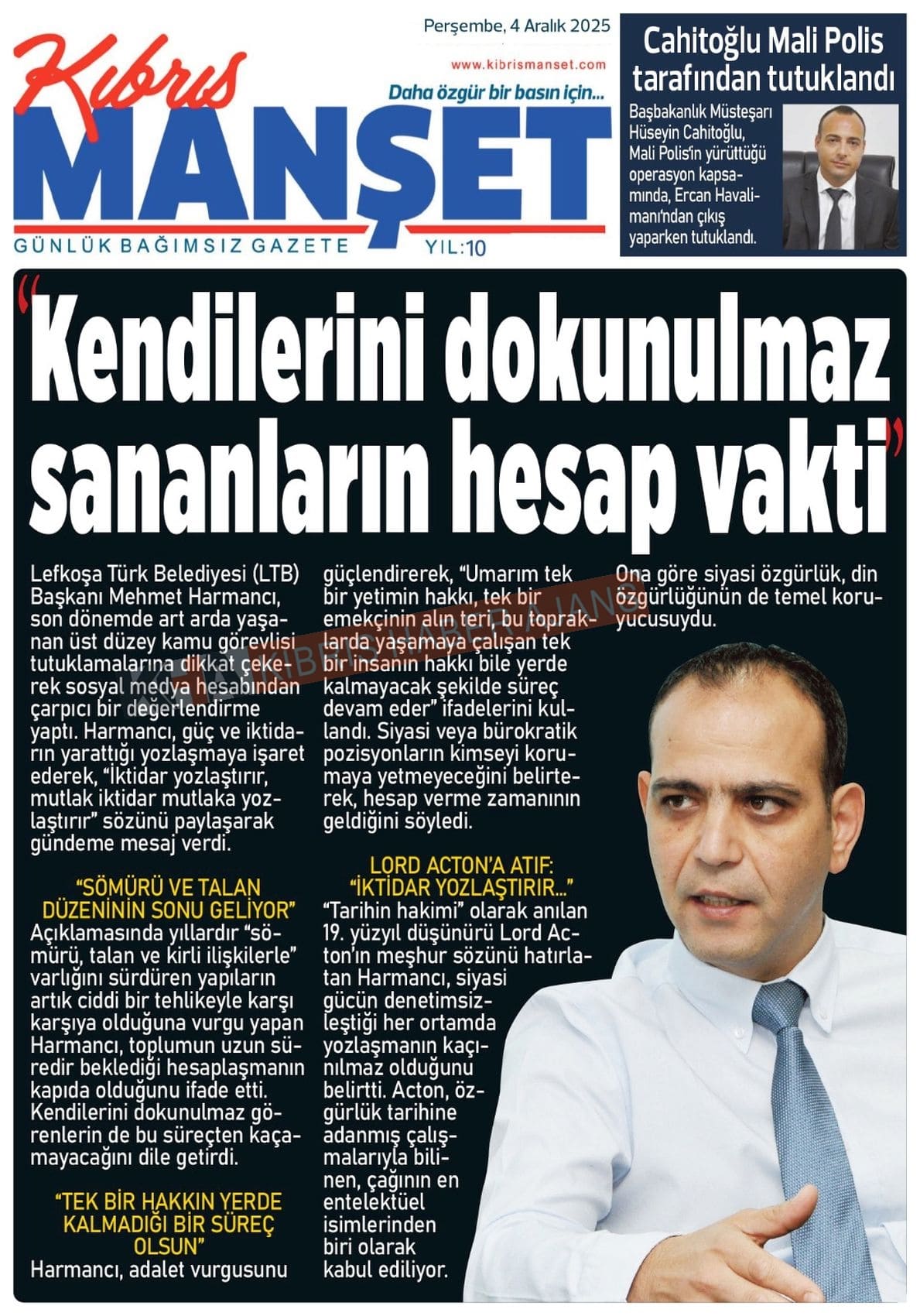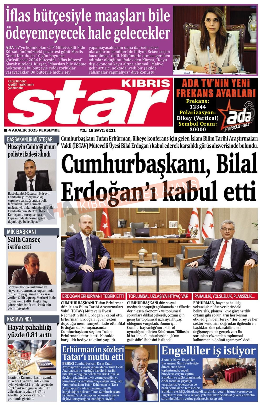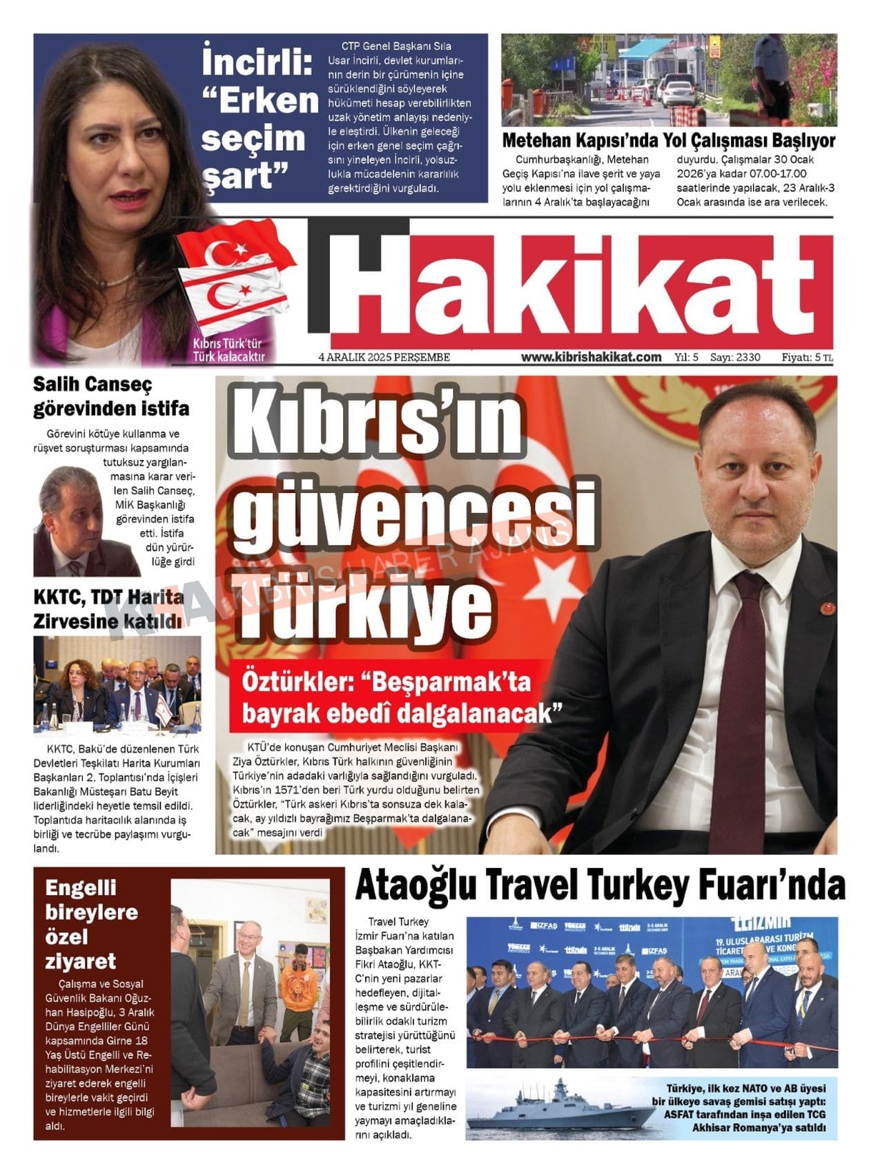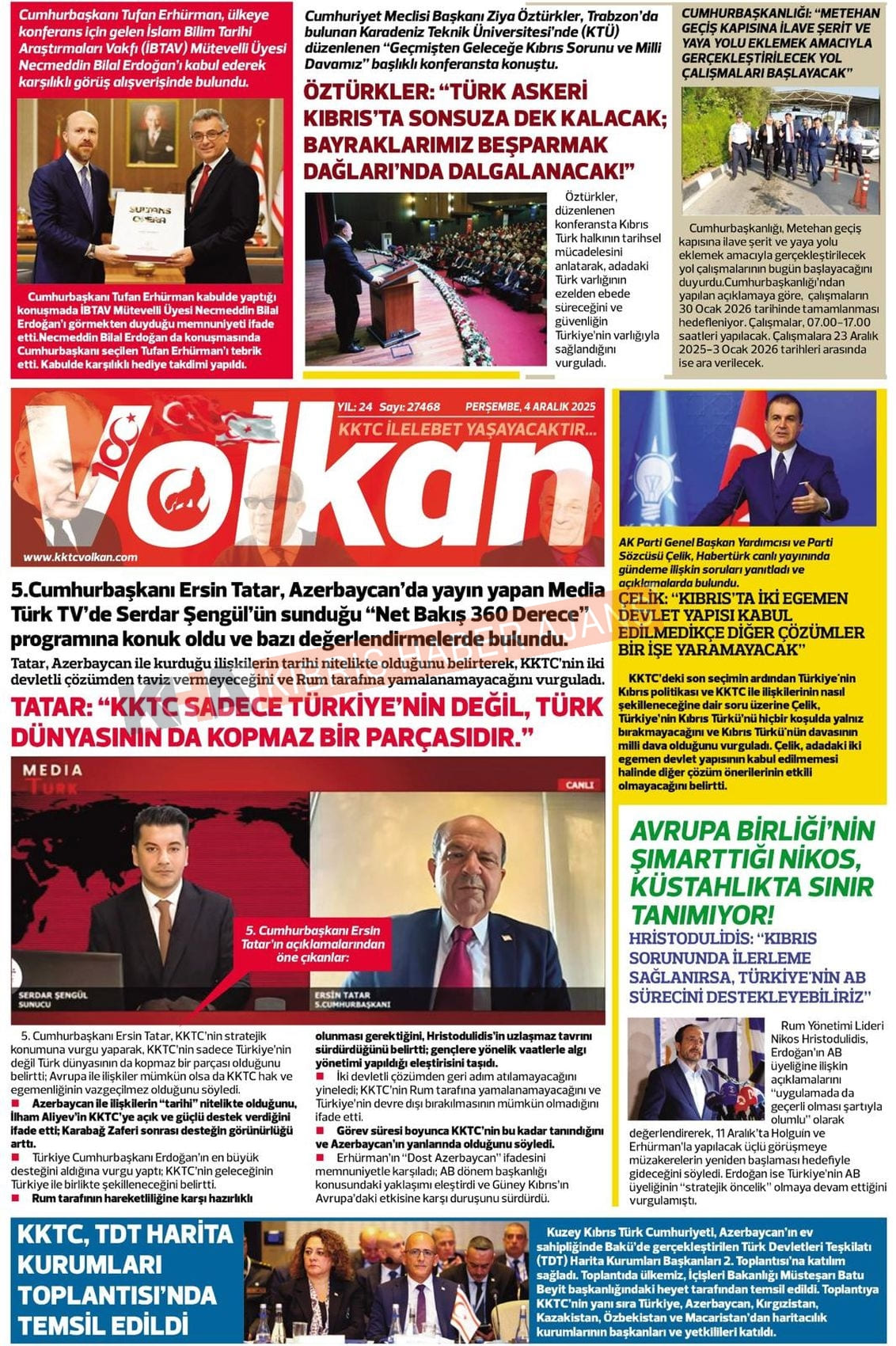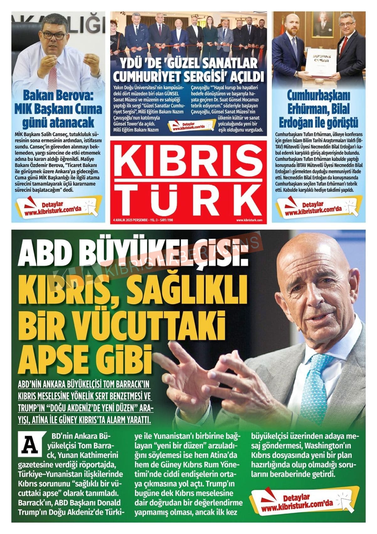 KKTC -TC Gazetelerinde Günün Manşetleri (04 Aralık 2025)