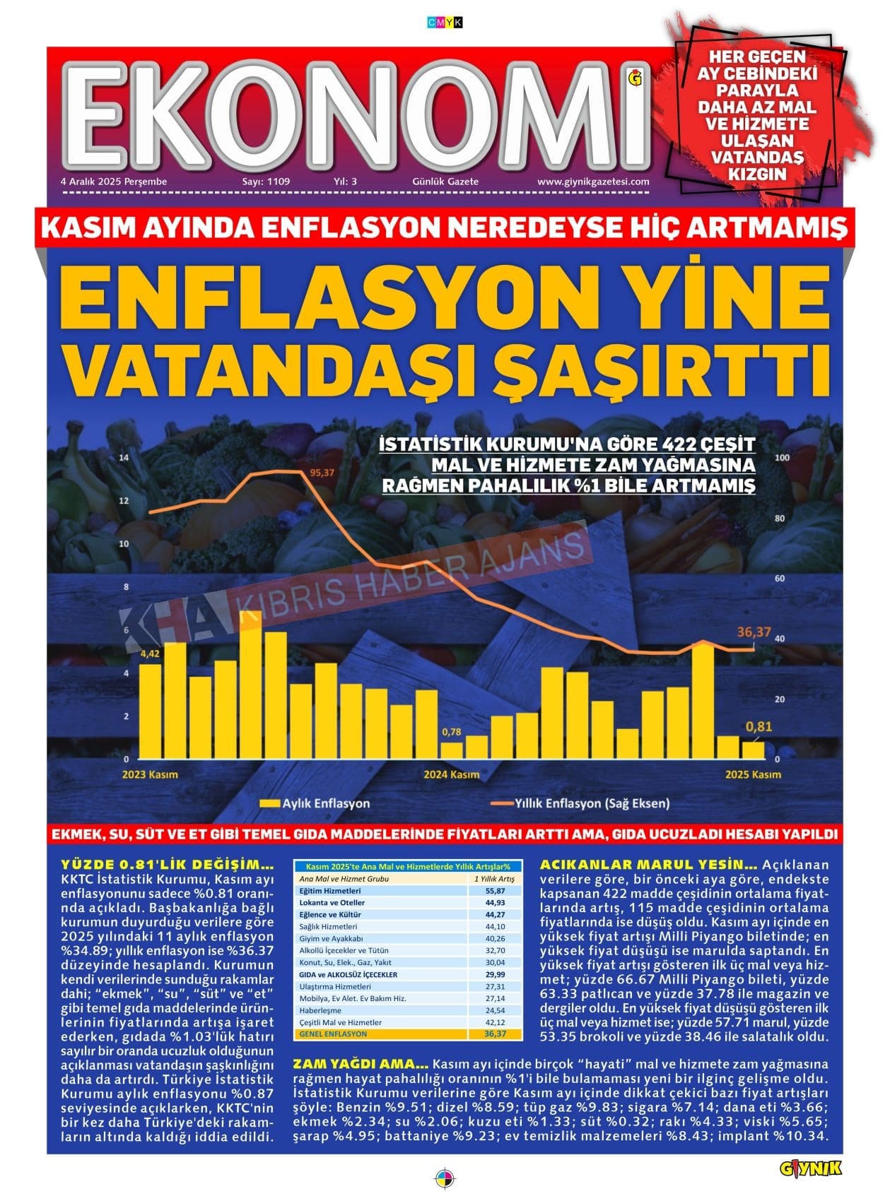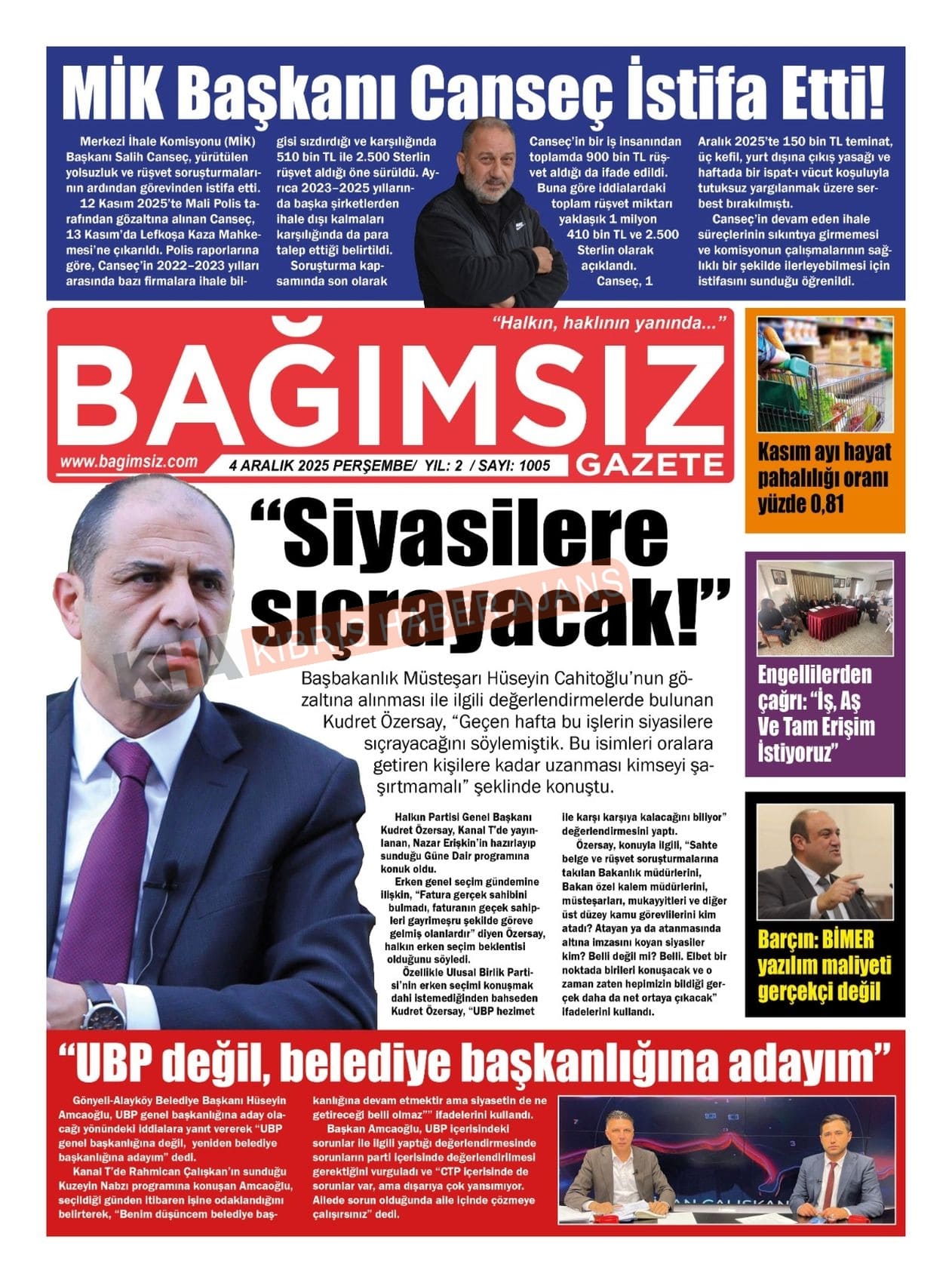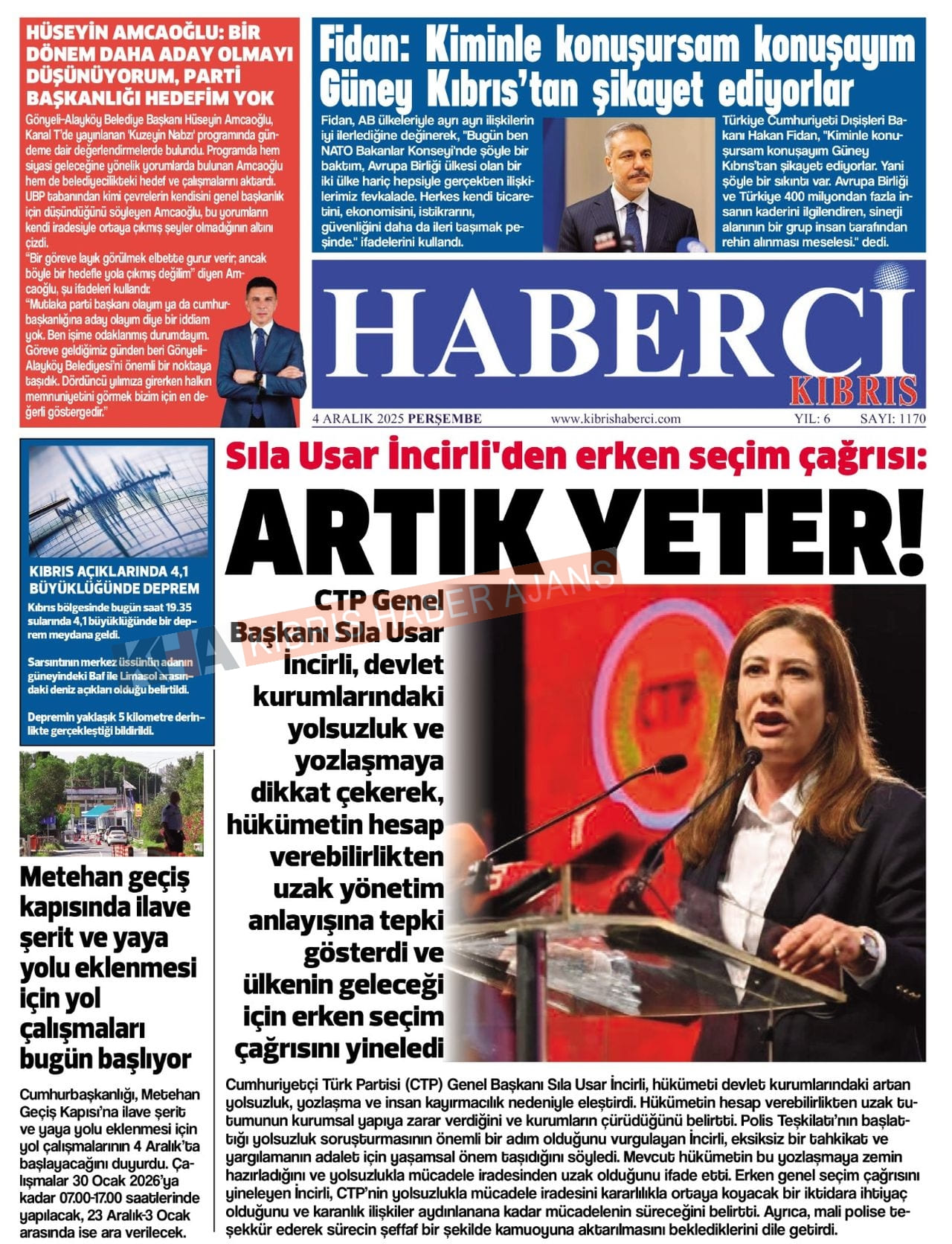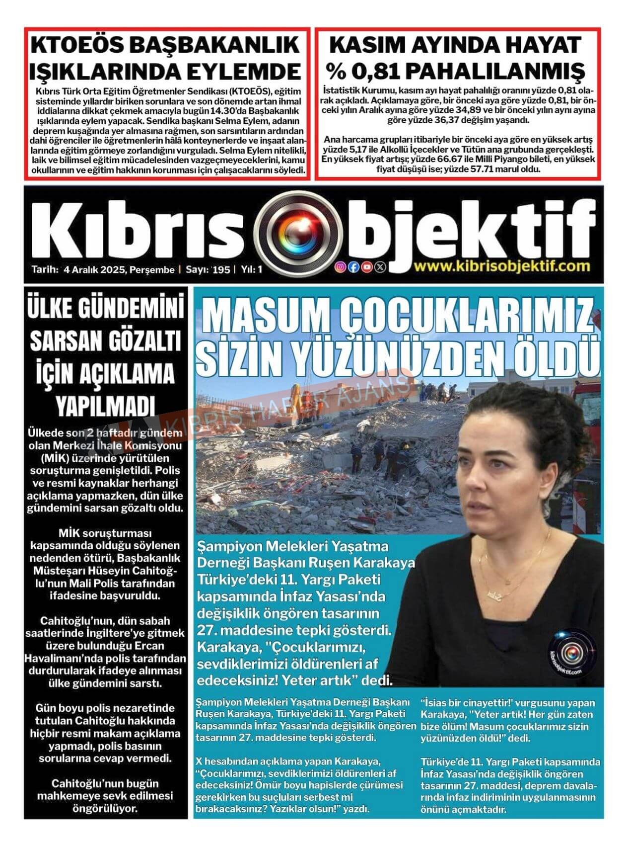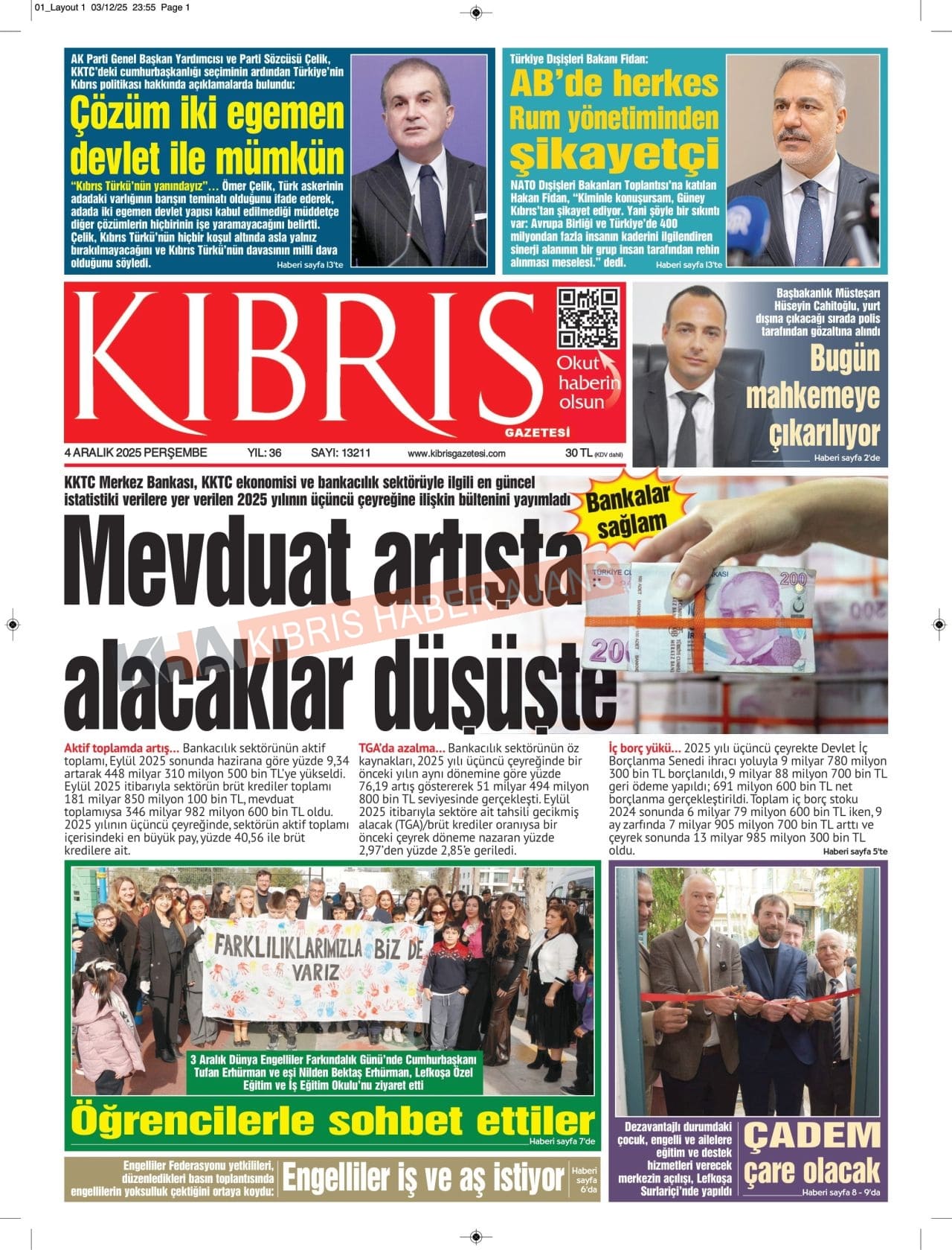 KKTC -TC Gazetelerinde Günün Manşetleri (04 Aralık 2025)