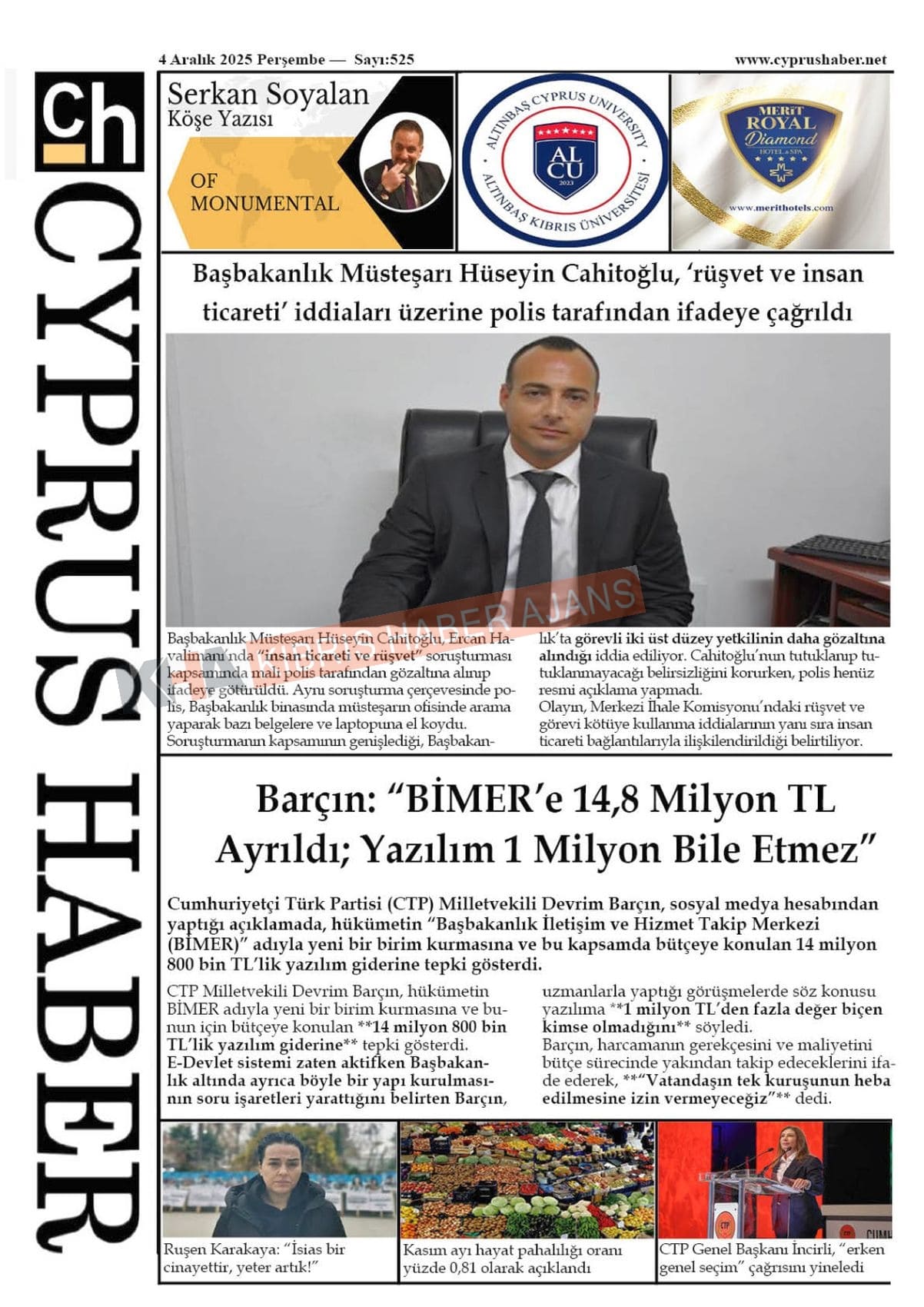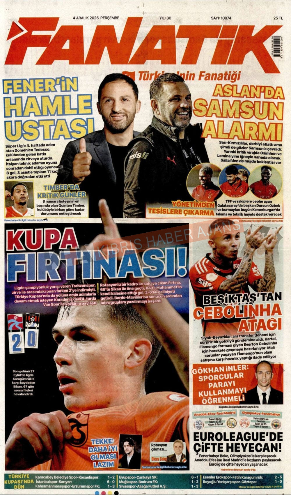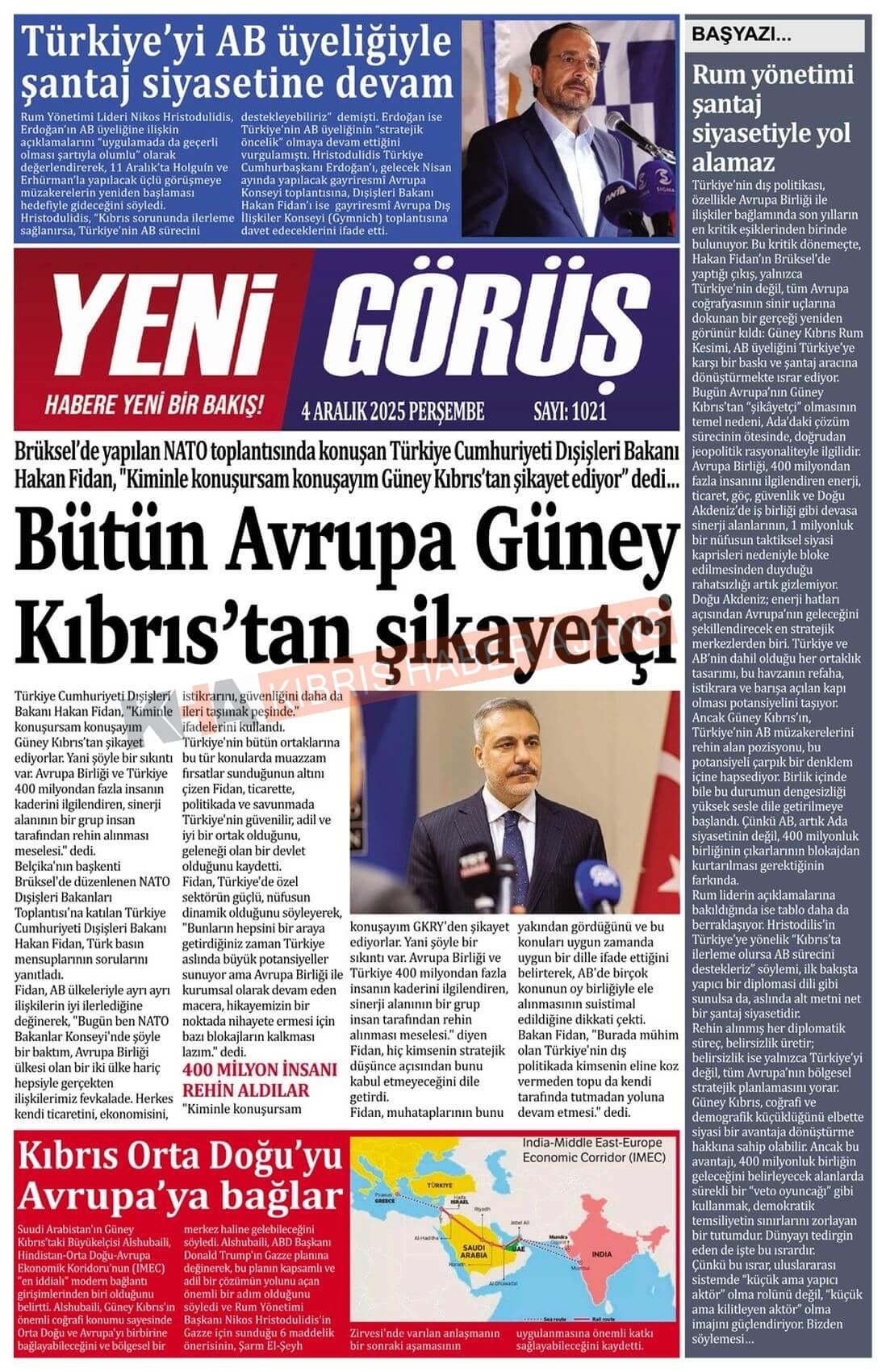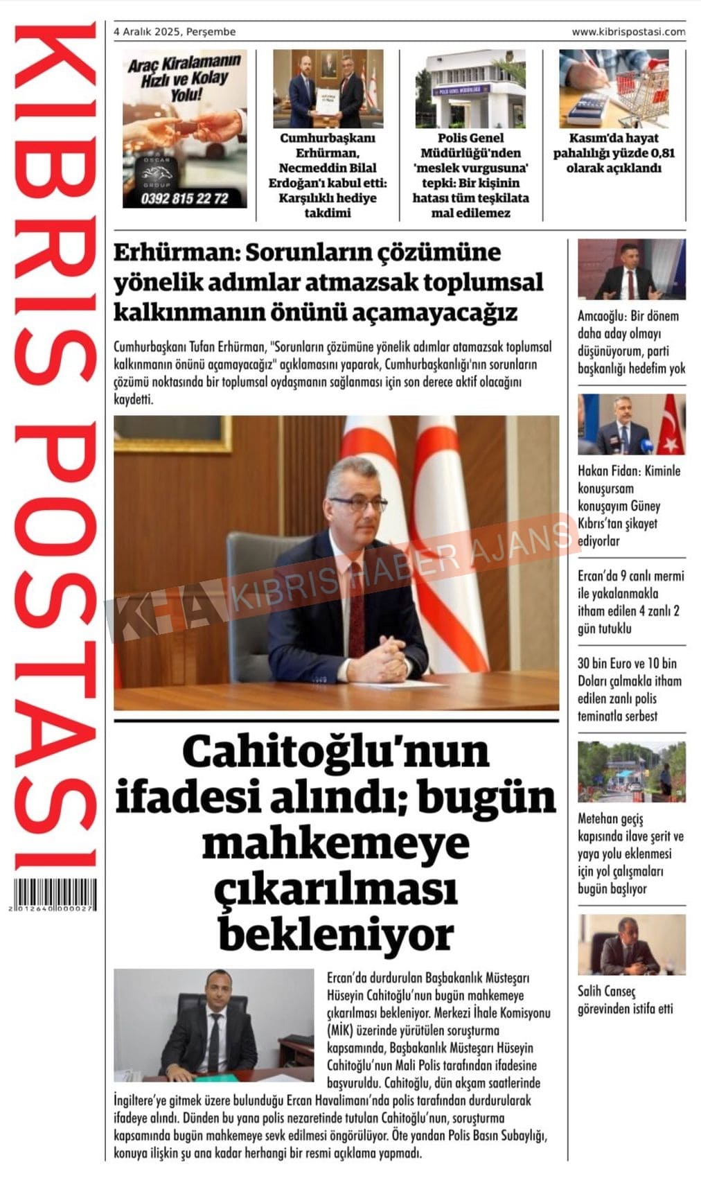 KKTC -TC Gazetelerinde Günün Manşetleri (04 Aralık 2025)