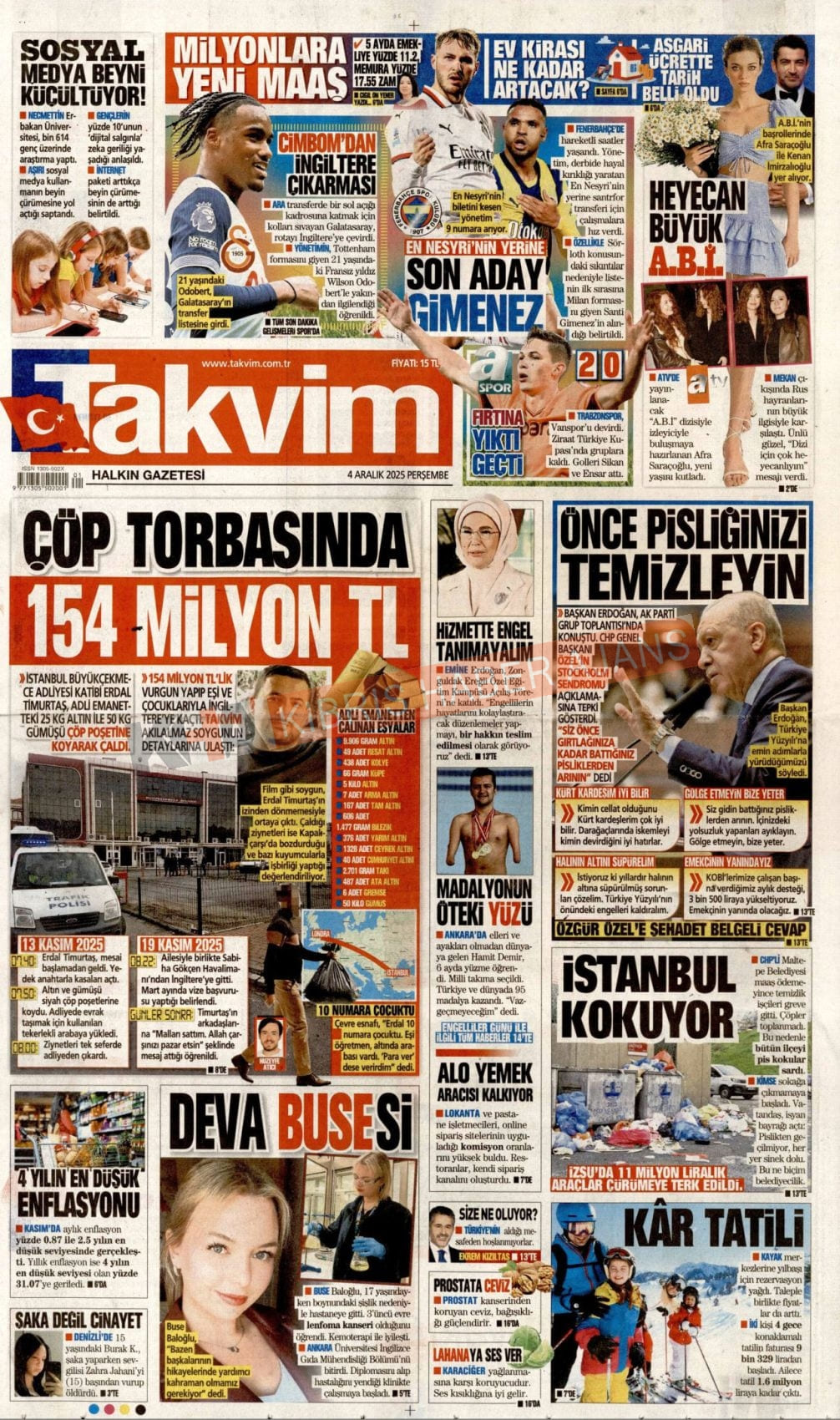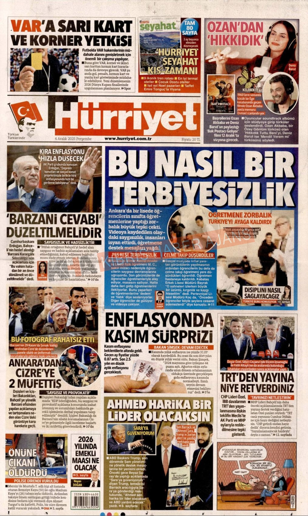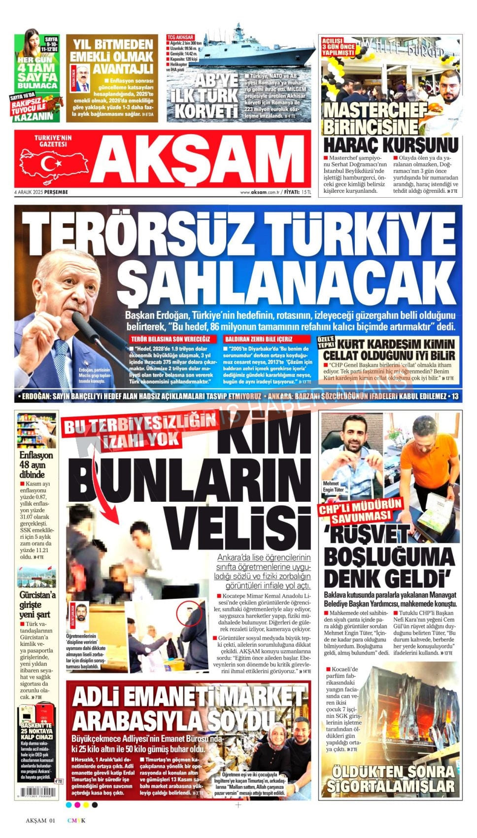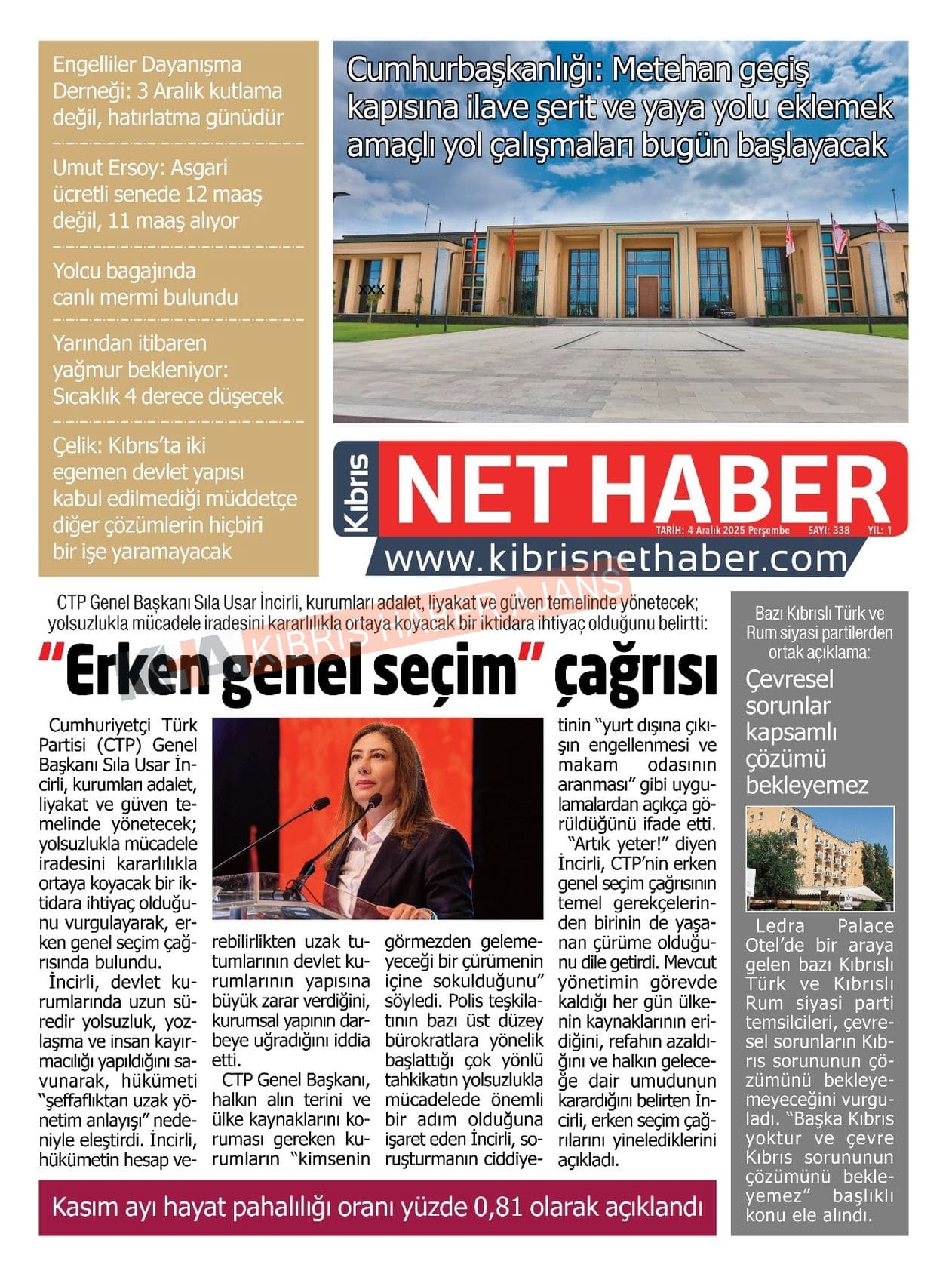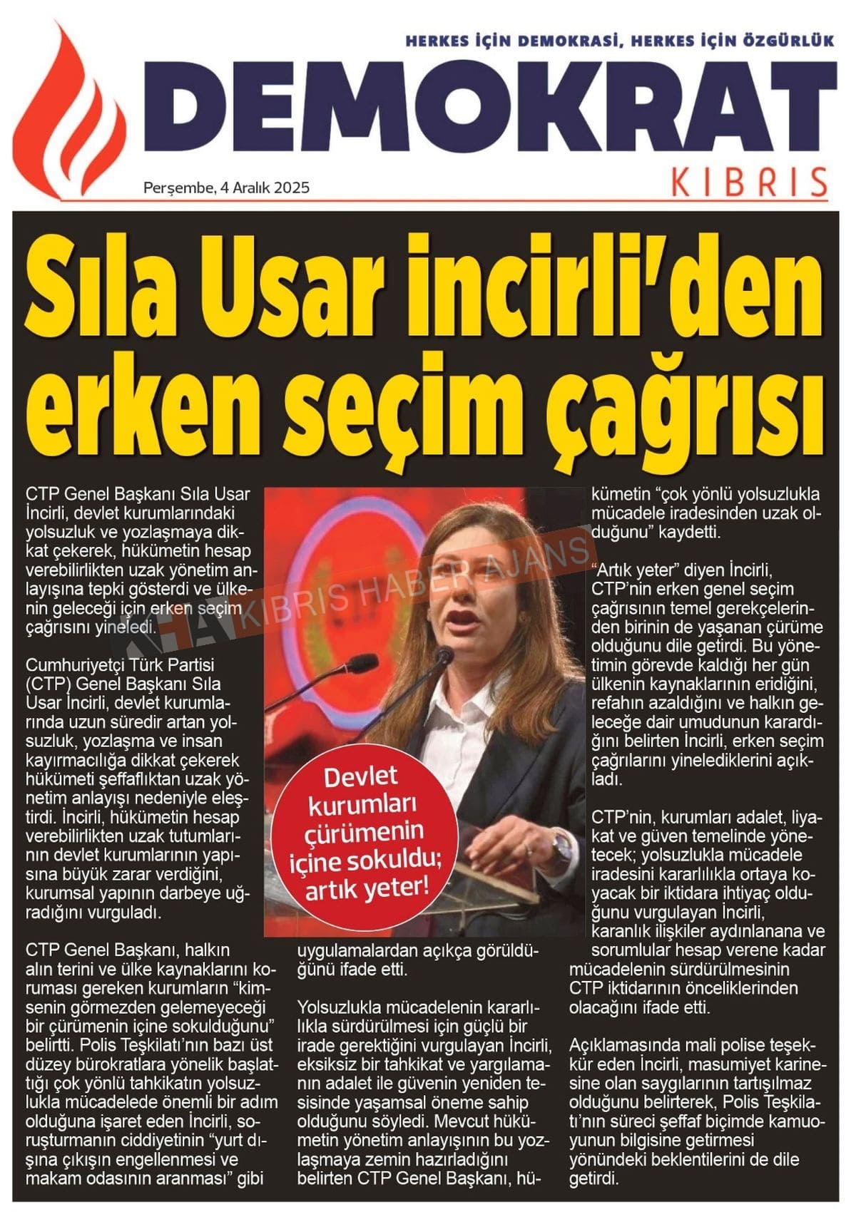 KKTC -TC Gazetelerinde Günün Manşetleri (04 Aralık 2025)