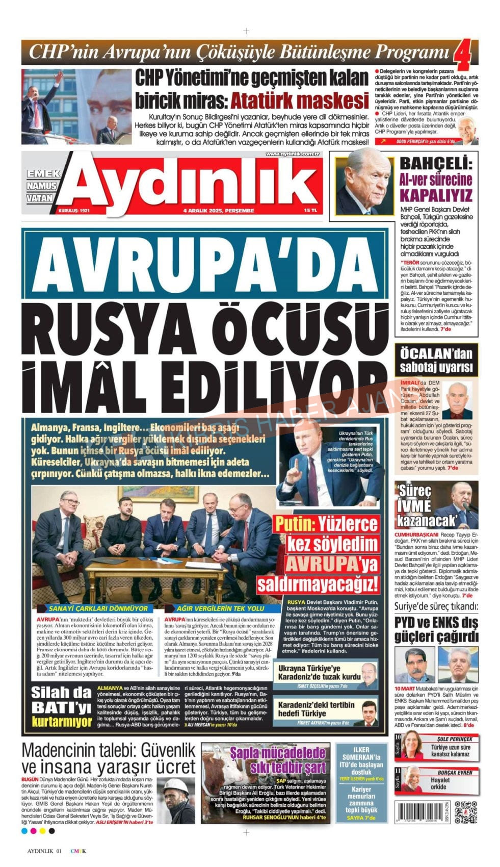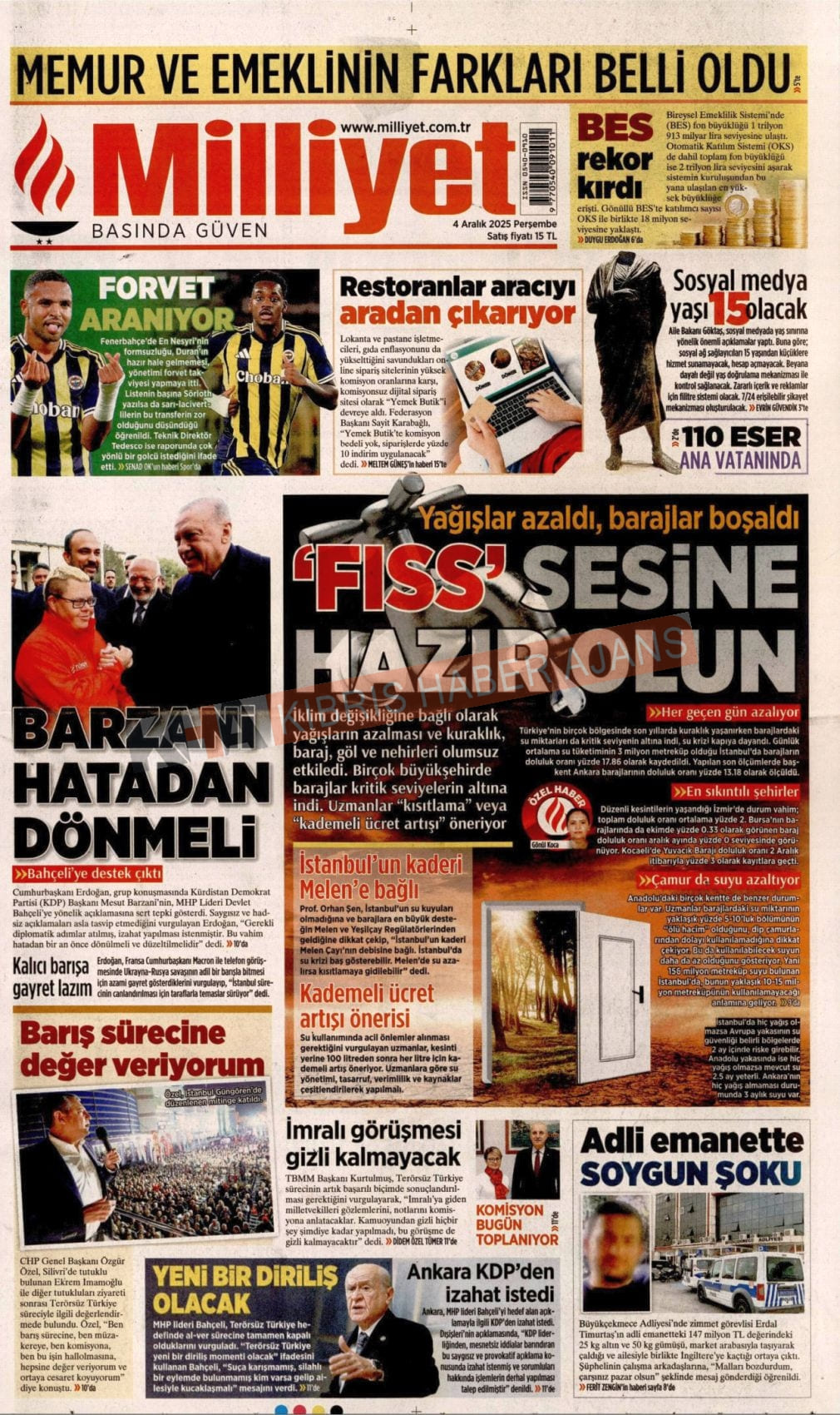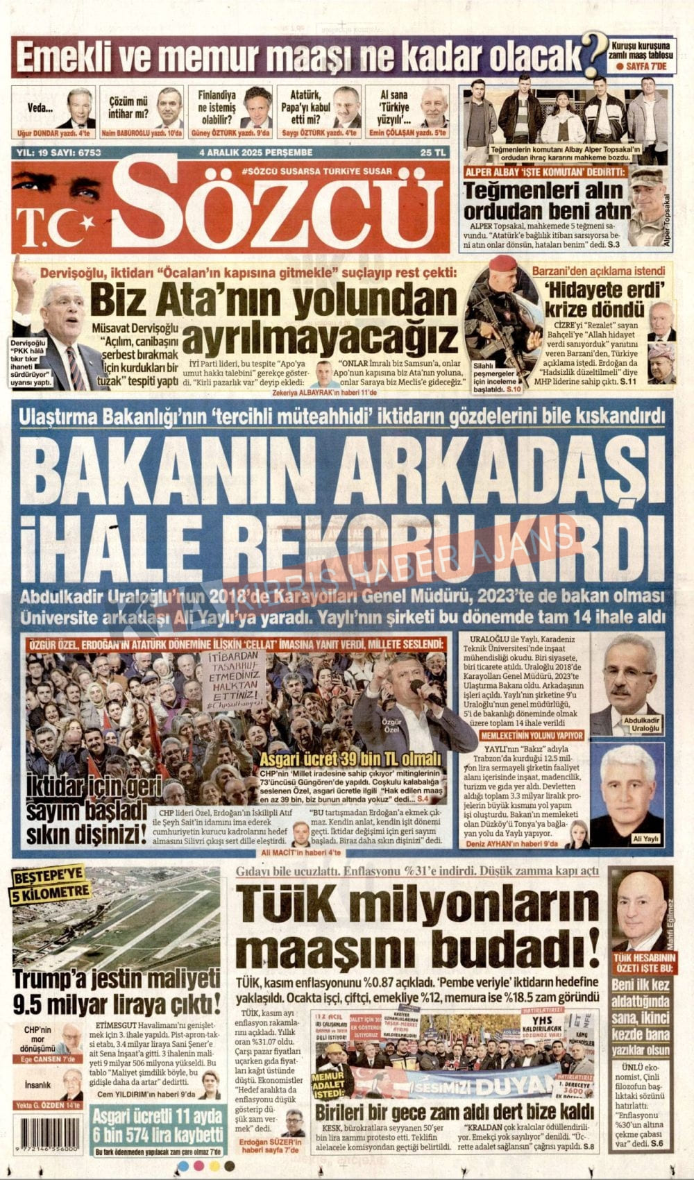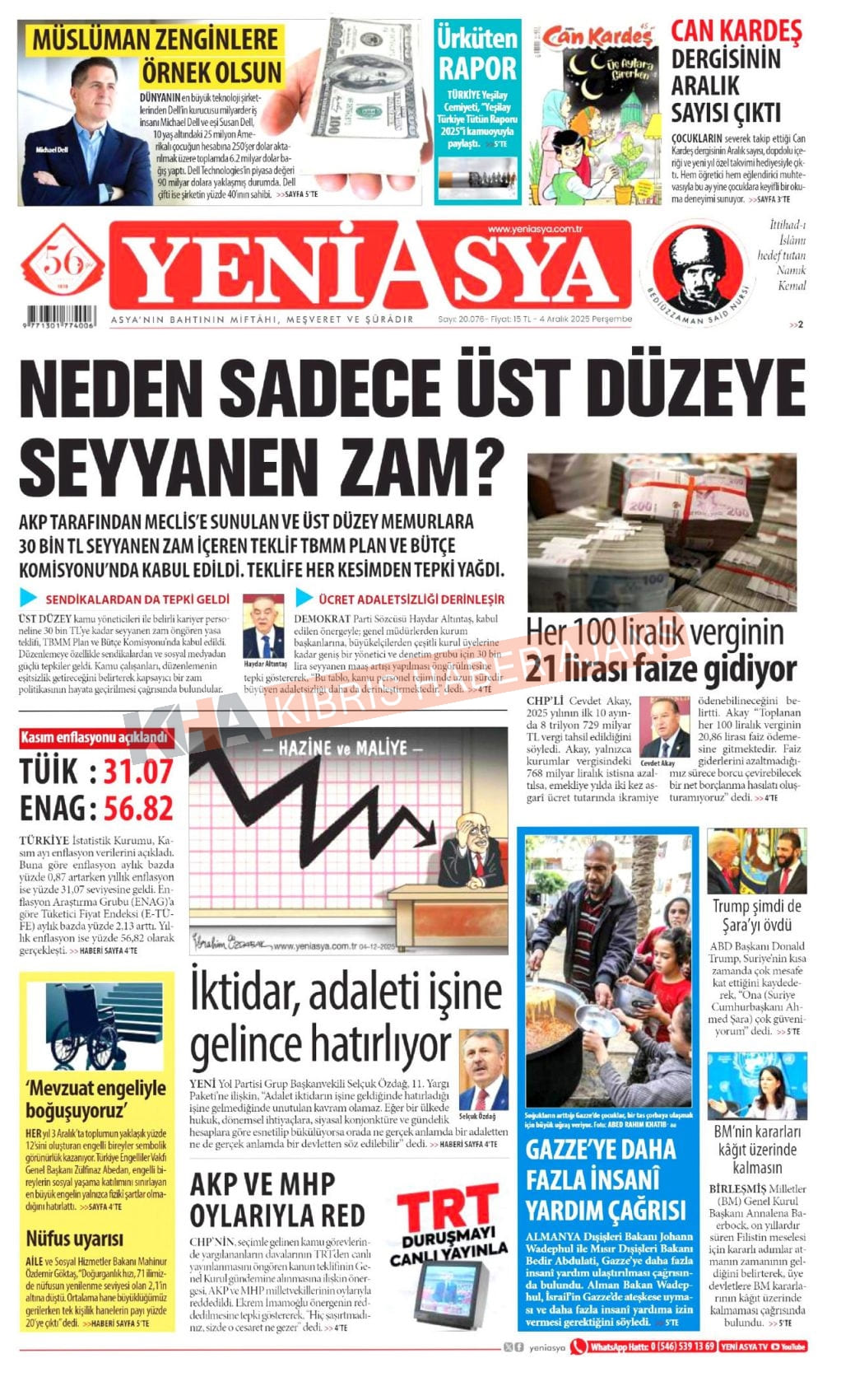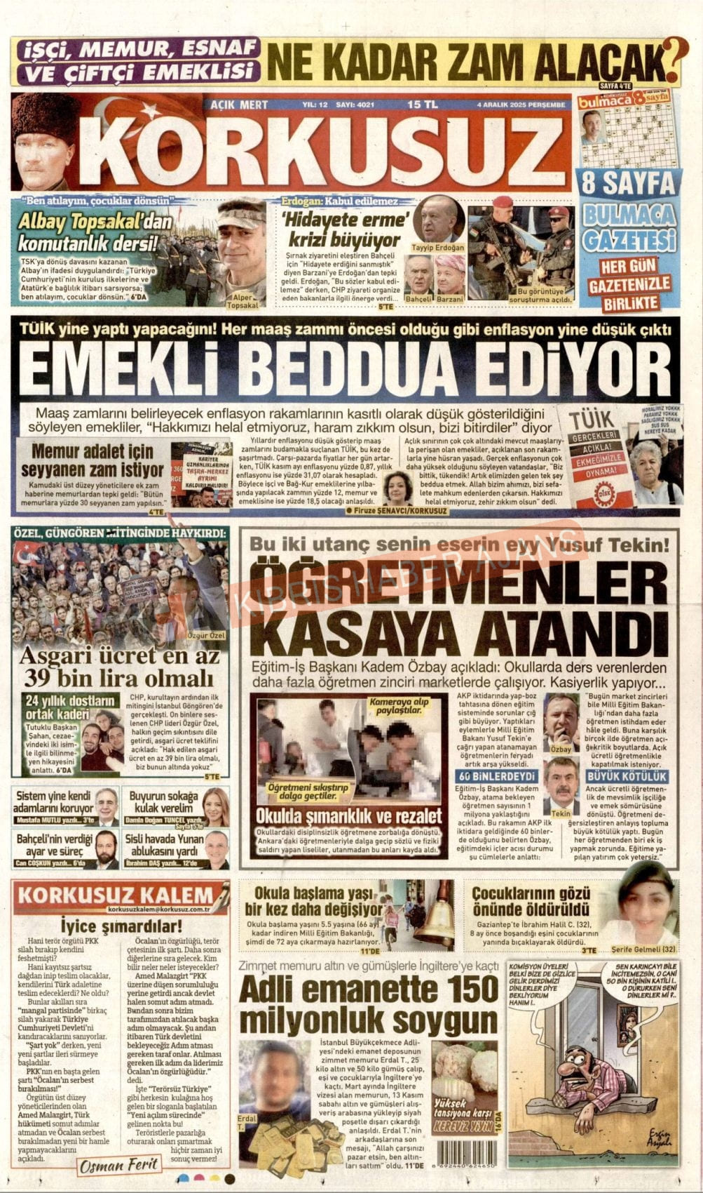 KKTC -TC Gazetelerinde Günün Manşetleri (04 Aralık 2025)