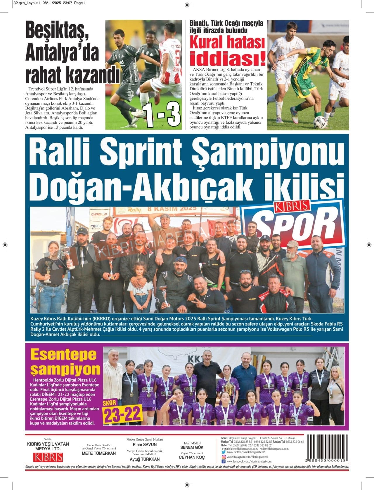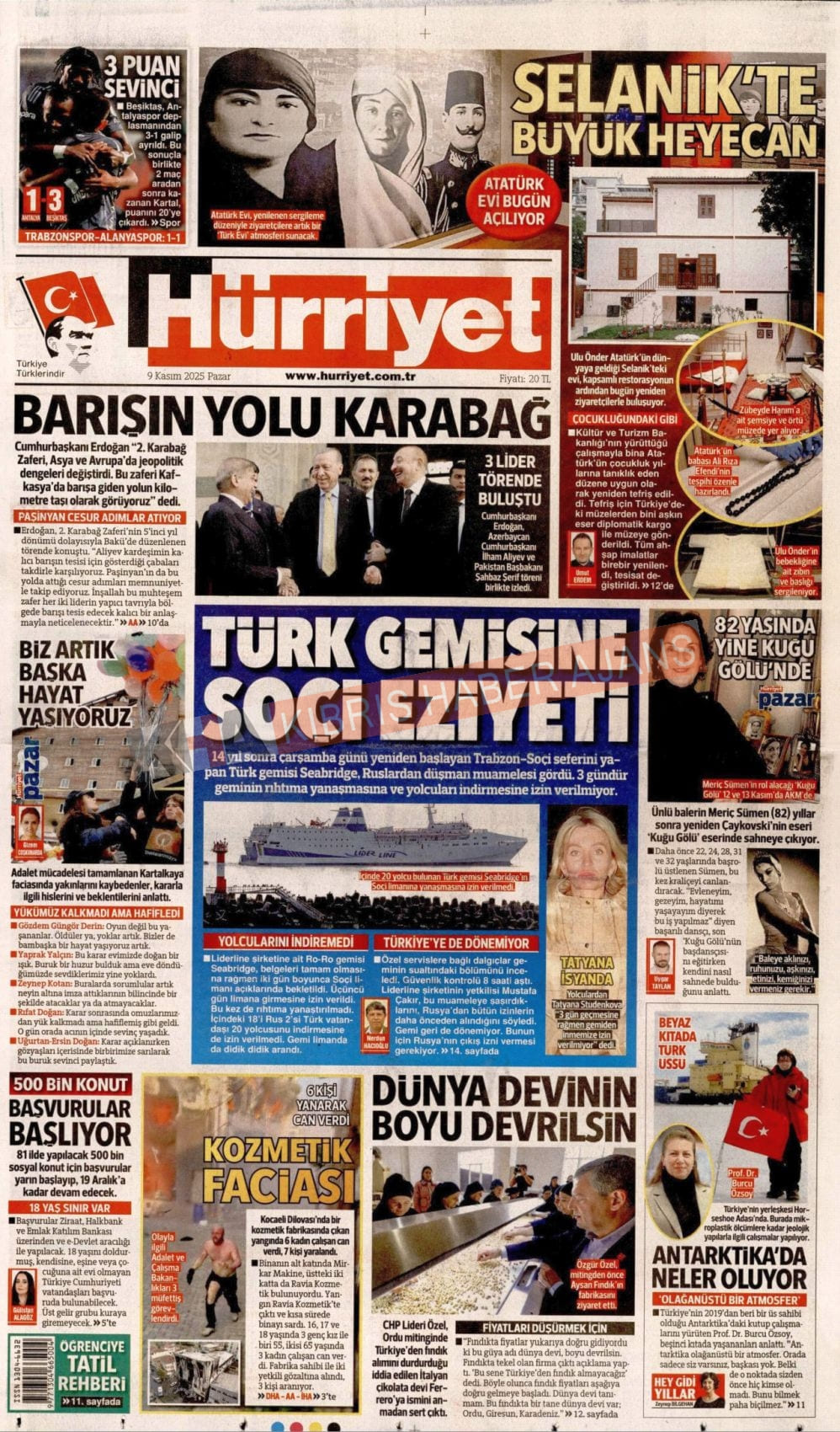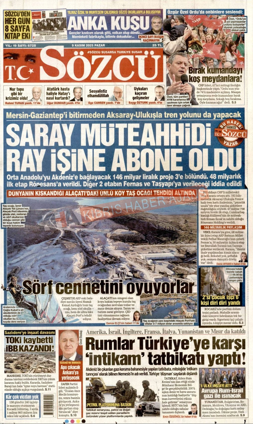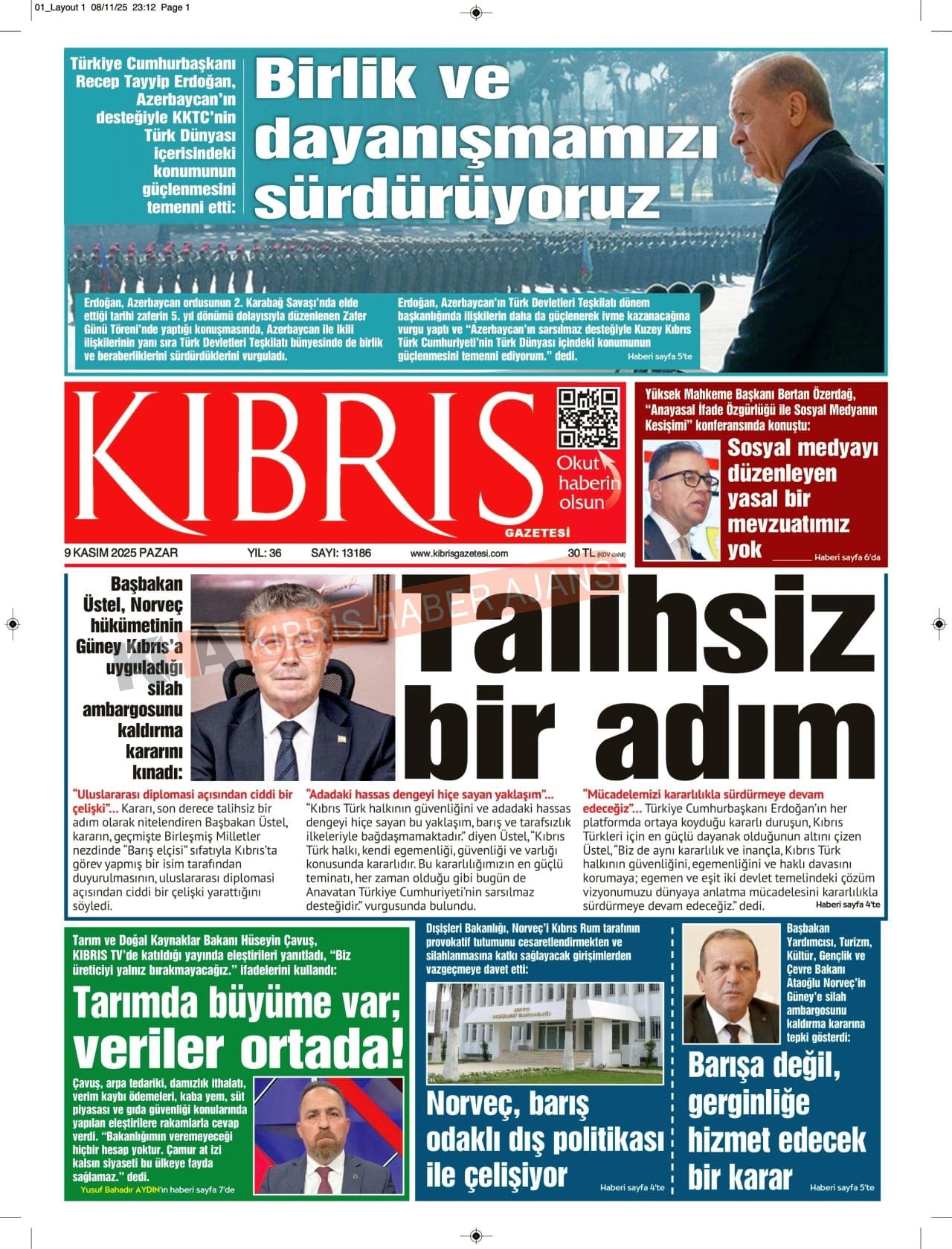 KKTC-TC Gazetelerinde Günün Manşetleri (09 KASIM 2025)