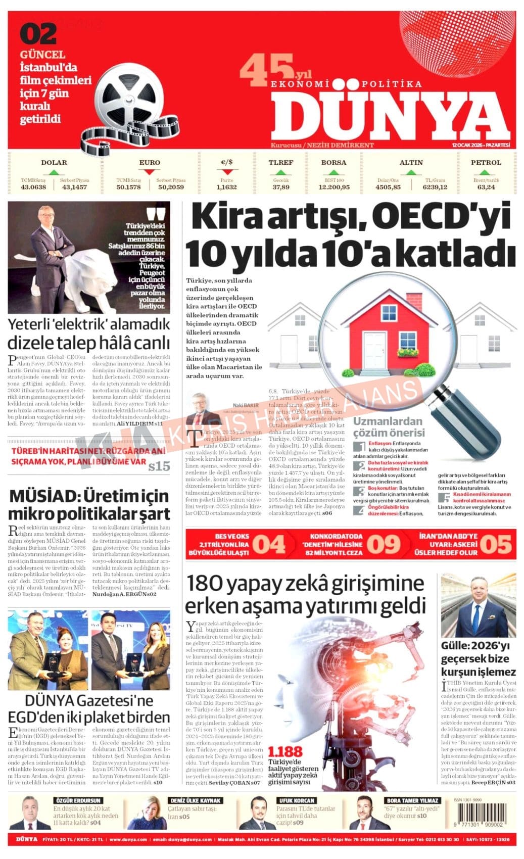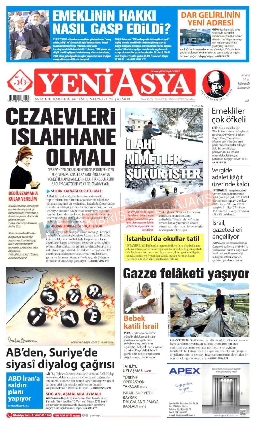 Sitede yayınlanan gazetelerdeki içeriklerden gazete sahipleri sorumludur. Yayınlanan gazeteler ve içeriklerinden Kıbrıs Haber Ajans ve Ajans Cyprus sorumlu tutulamaz.
