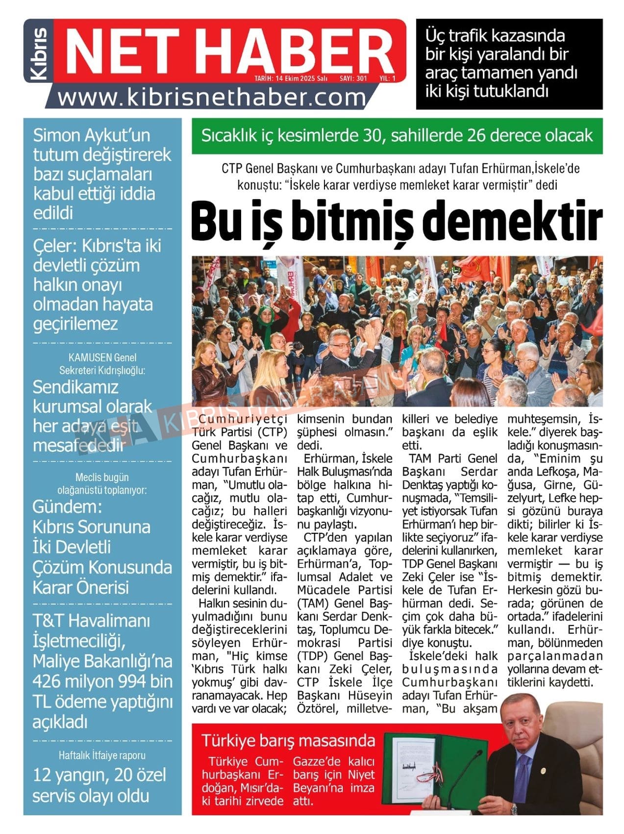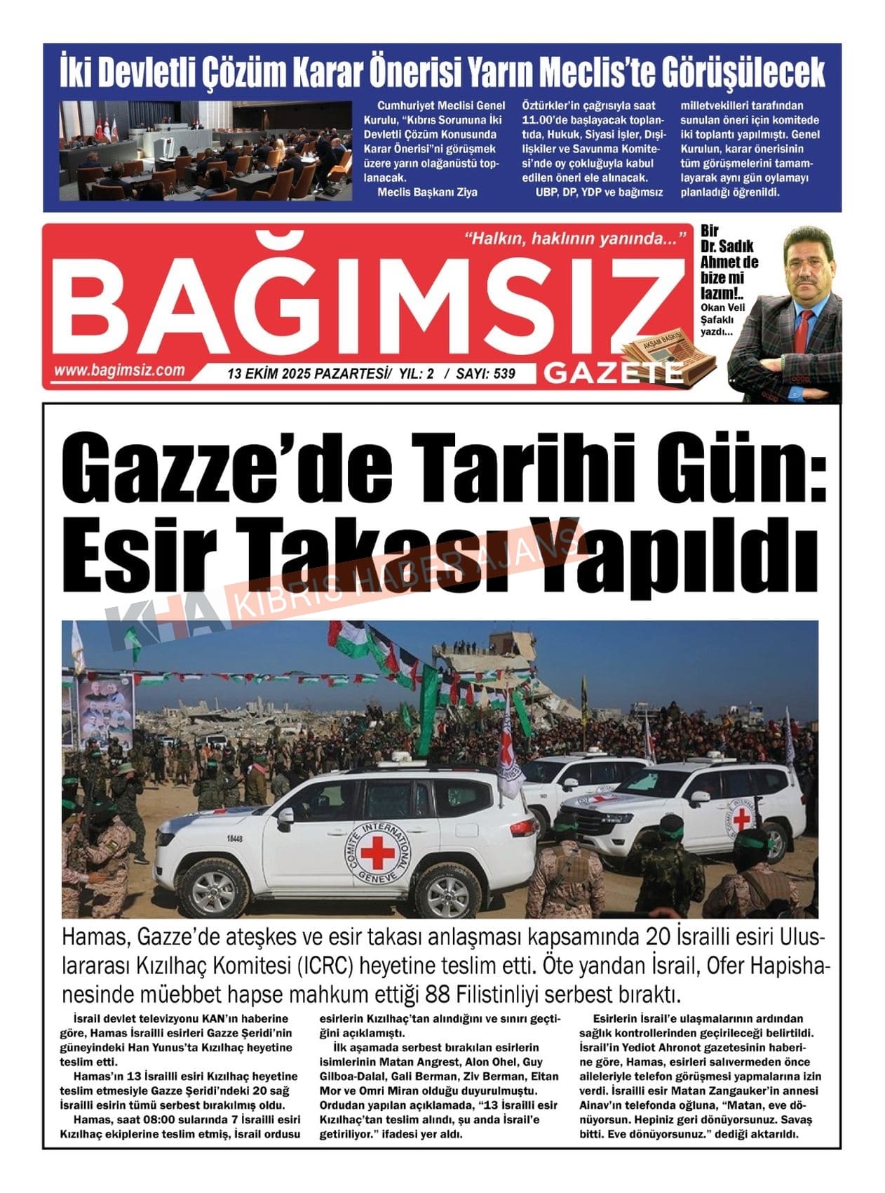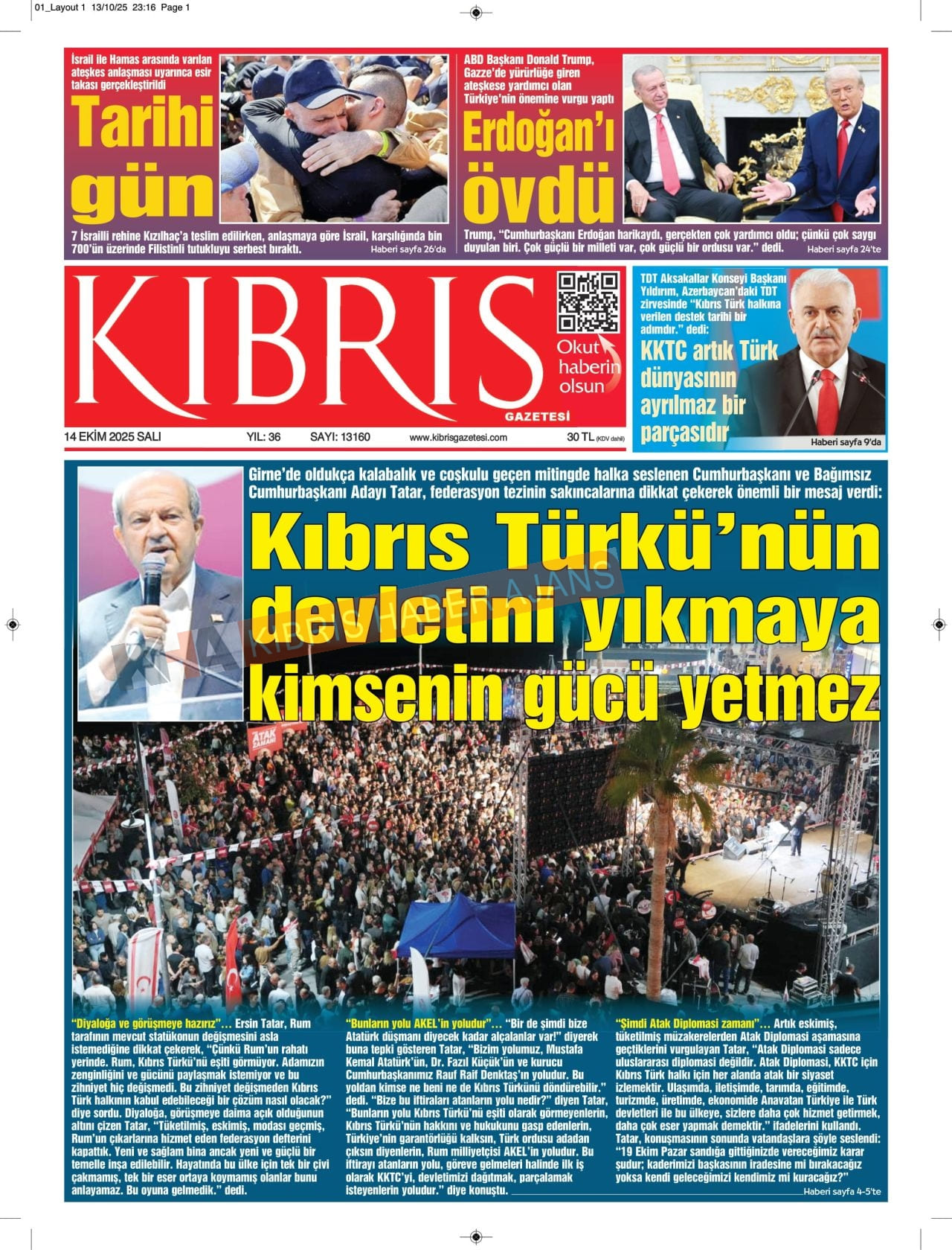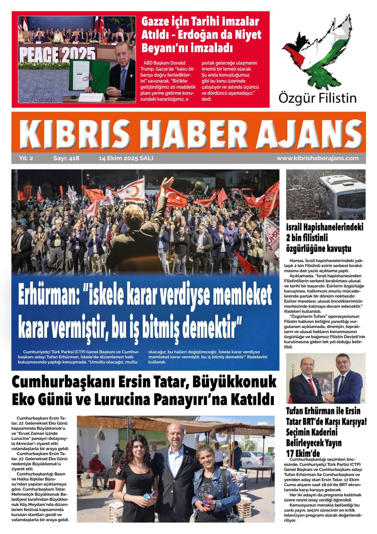 Sitede yayınlanan gazetelerdeki içeriklerden gazete sahipleri sorumludur. Yayınlanan gazeteler ve içeriklerinden Kıbrıs Haber Ajans ve Ajans Cyprus sorumlu tutulamaz.