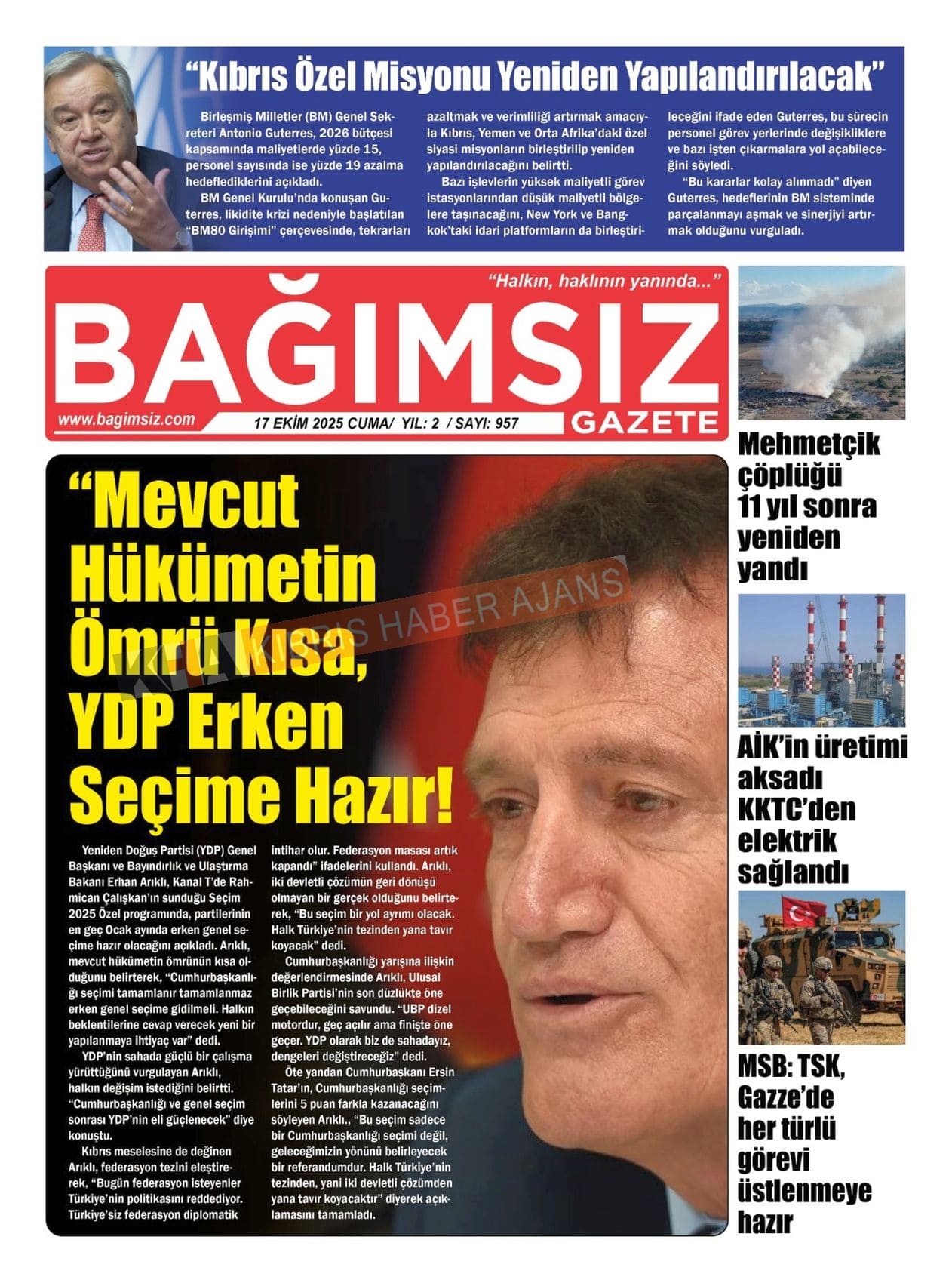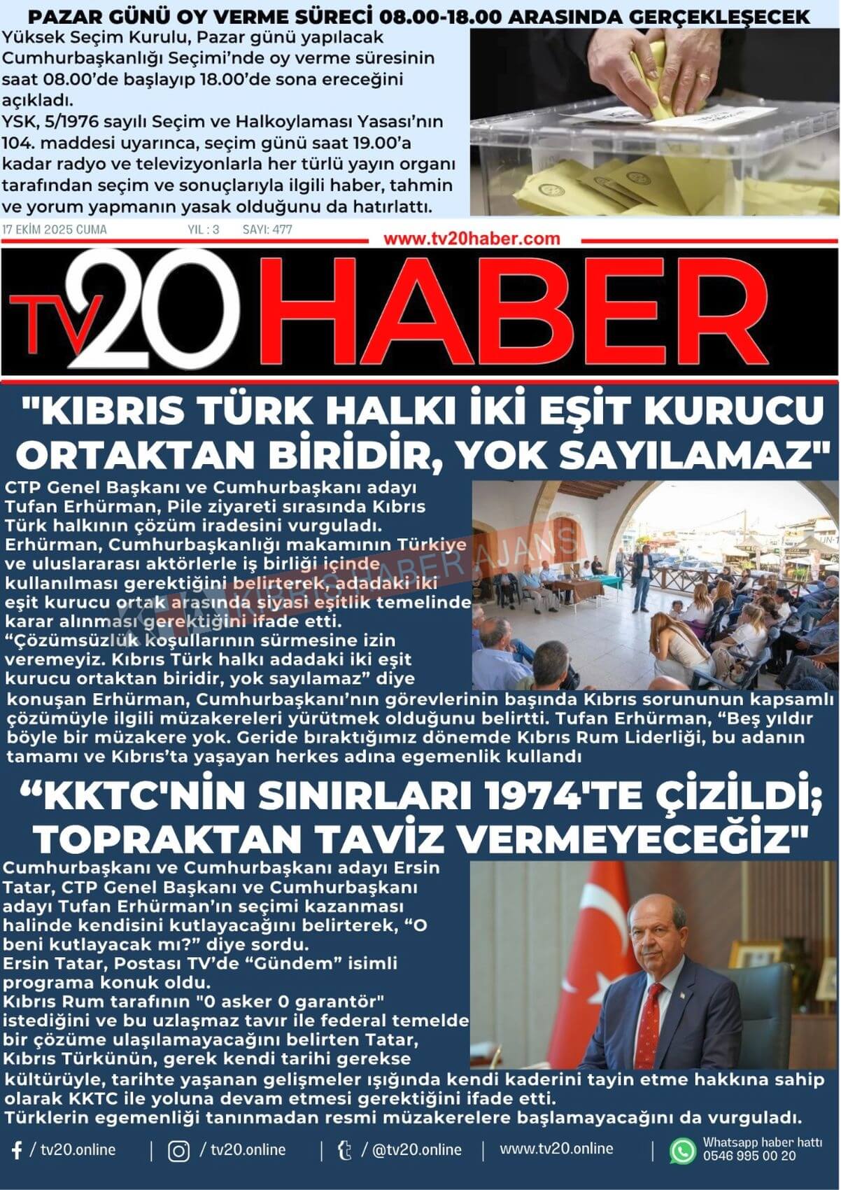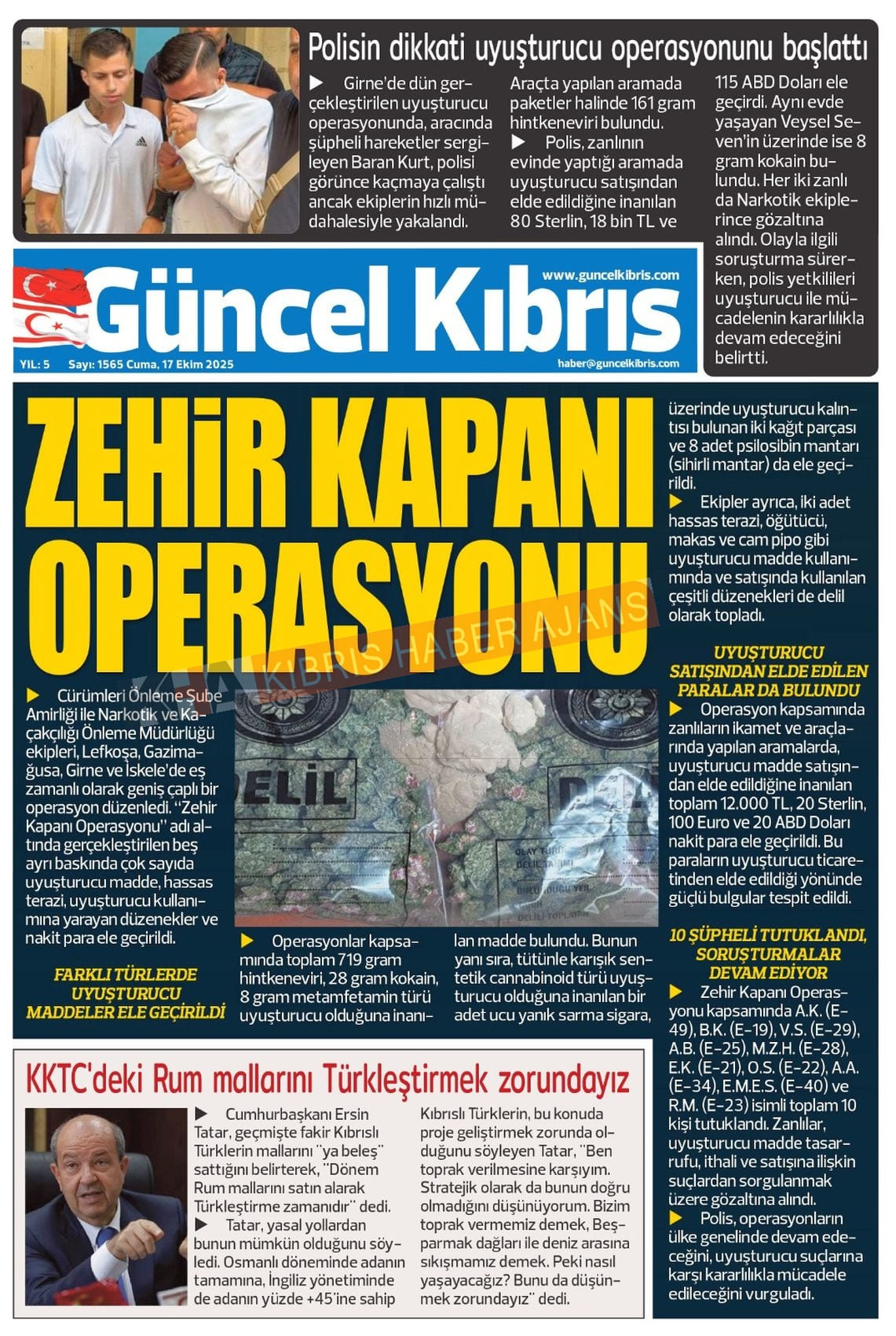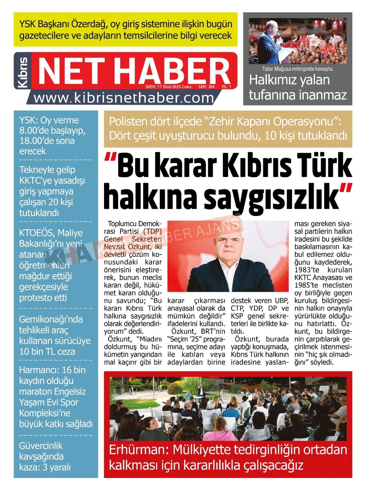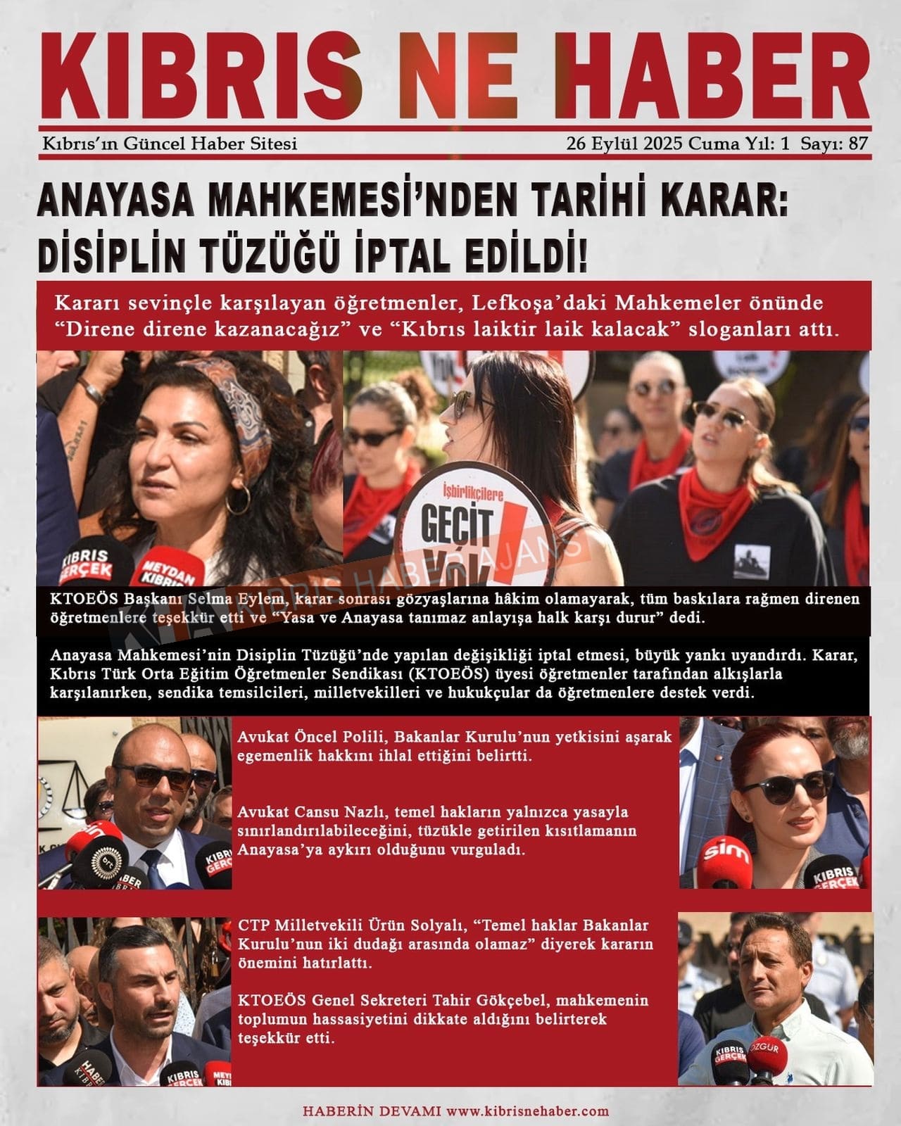 Sitede yayınlanan gazetelerdeki içeriklerden gazete sahipleri sorumludur. Yayınlanan gazeteler ve içeriklerinden Kıbrıs Haber Ajans ve Ajans Cyprus sorumlu tutulamaz.