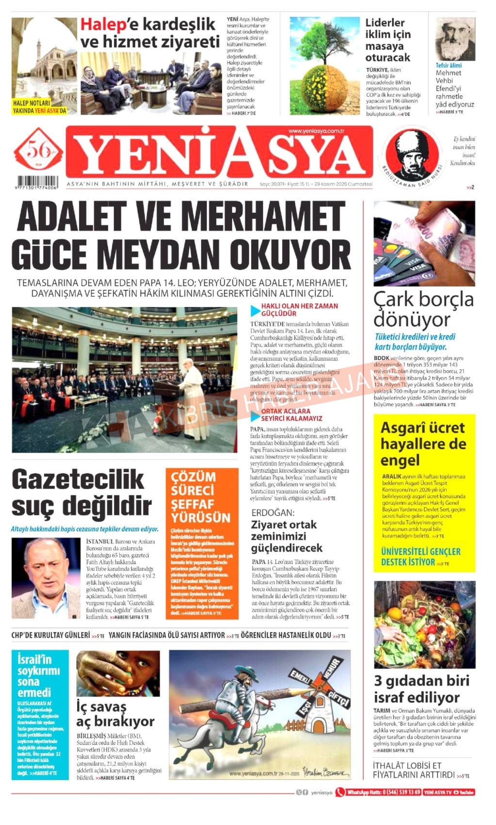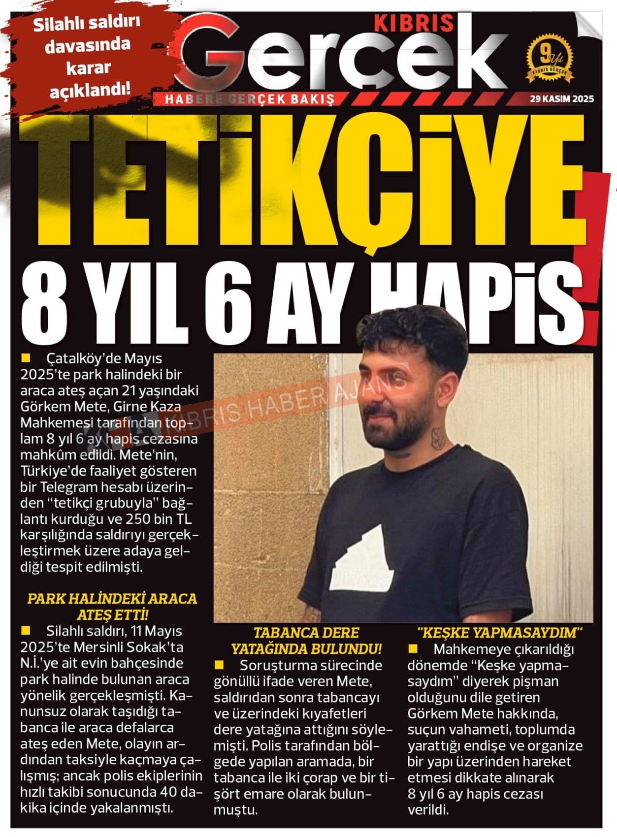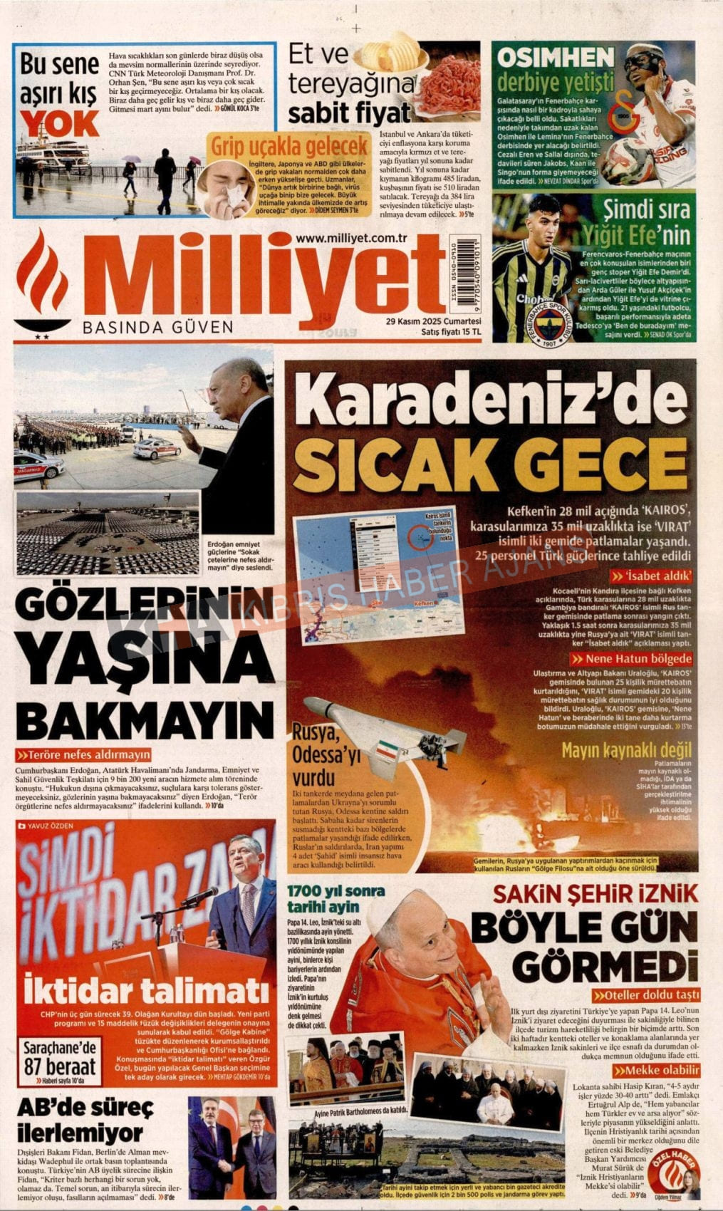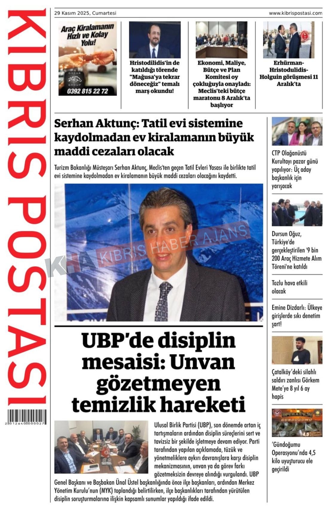 Sitede yayınlanan gazetelerdeki içeriklerden gazete sahipleri sorumludur. Yayınlanan gazeteler ve içeriklerinden Kıbrıs Haber Ajans ve Ajans Cyprus sorumlu tutulamaz.
