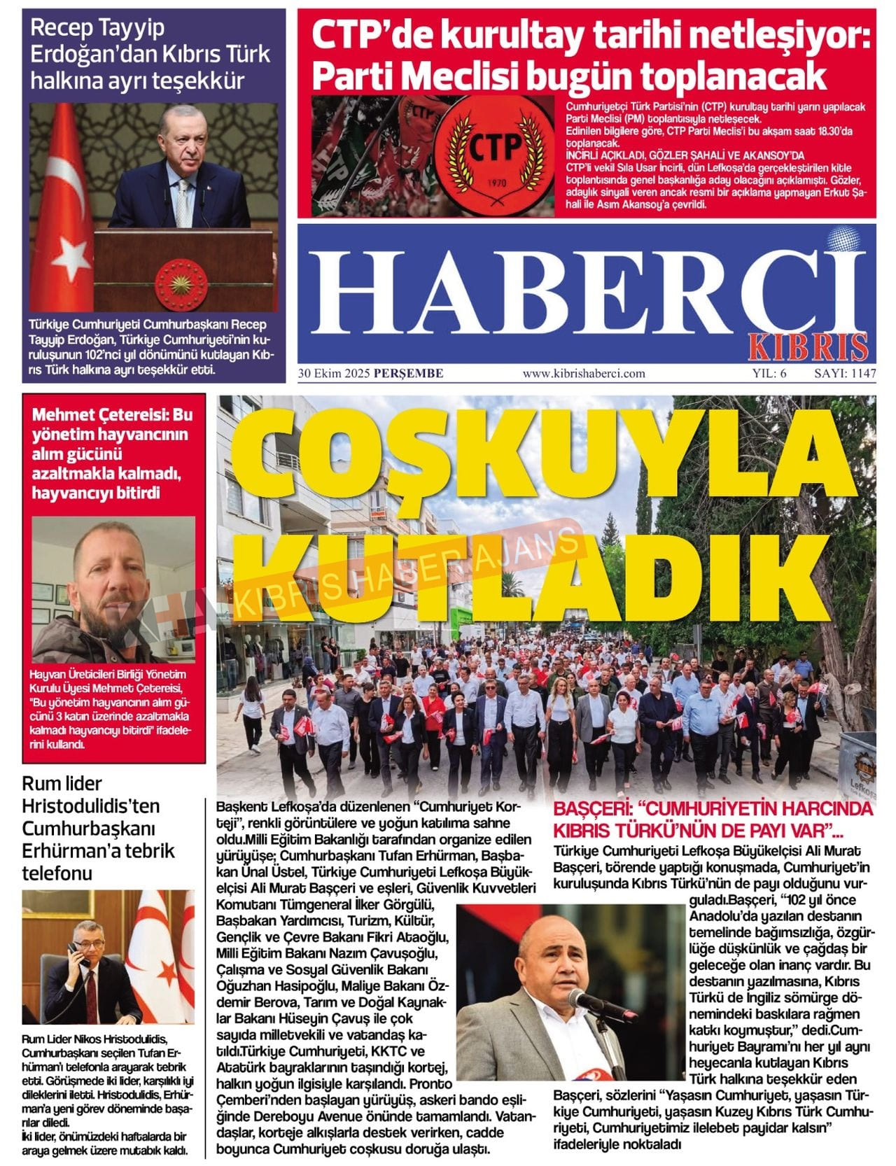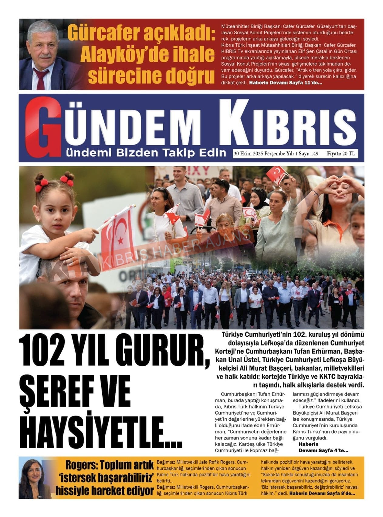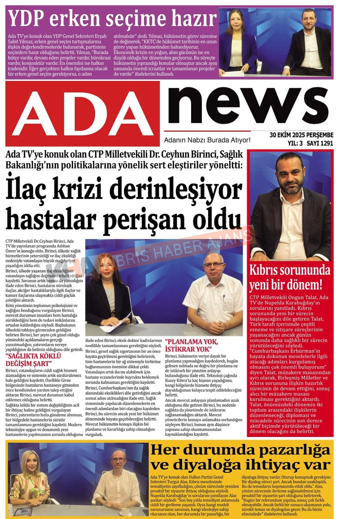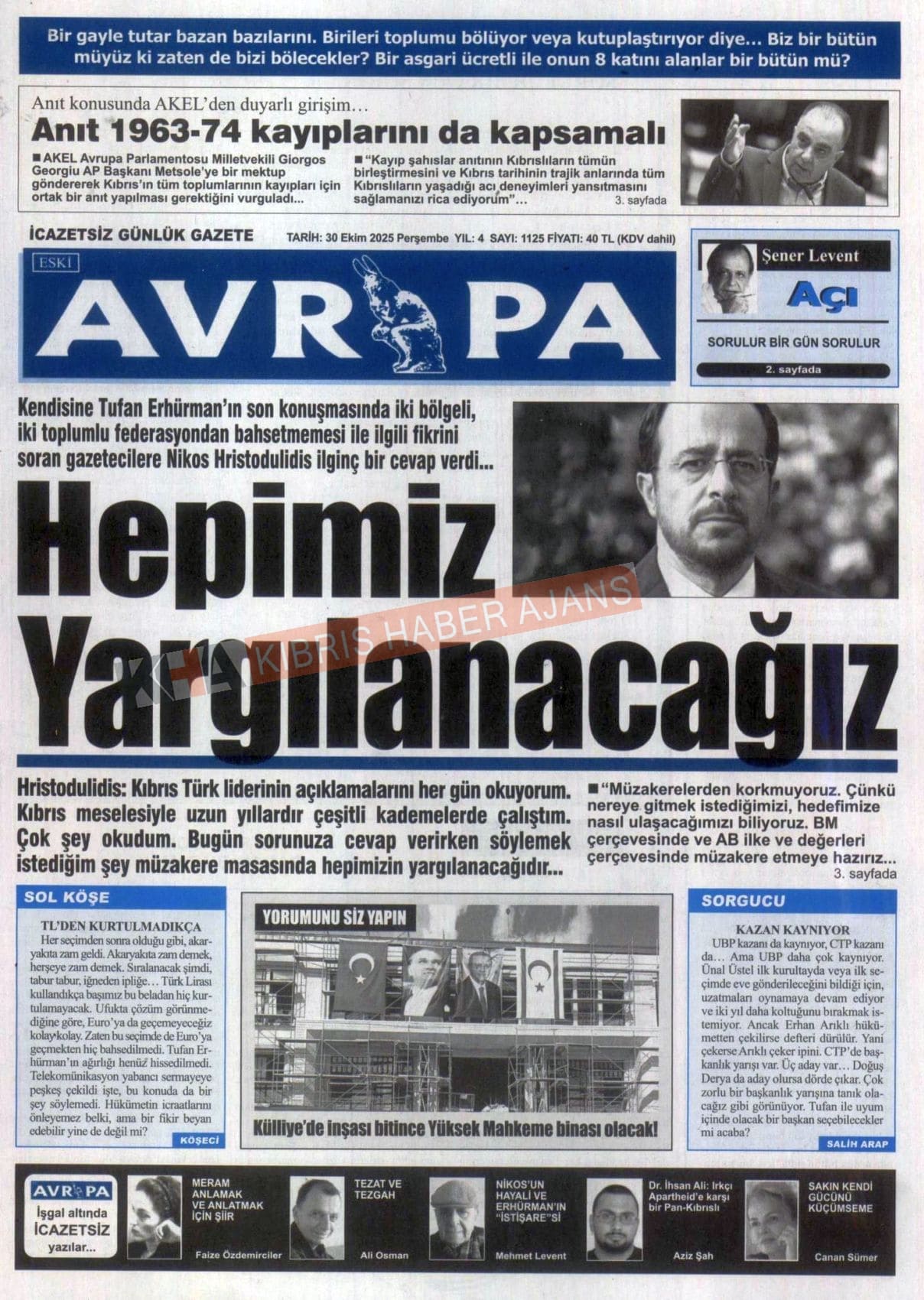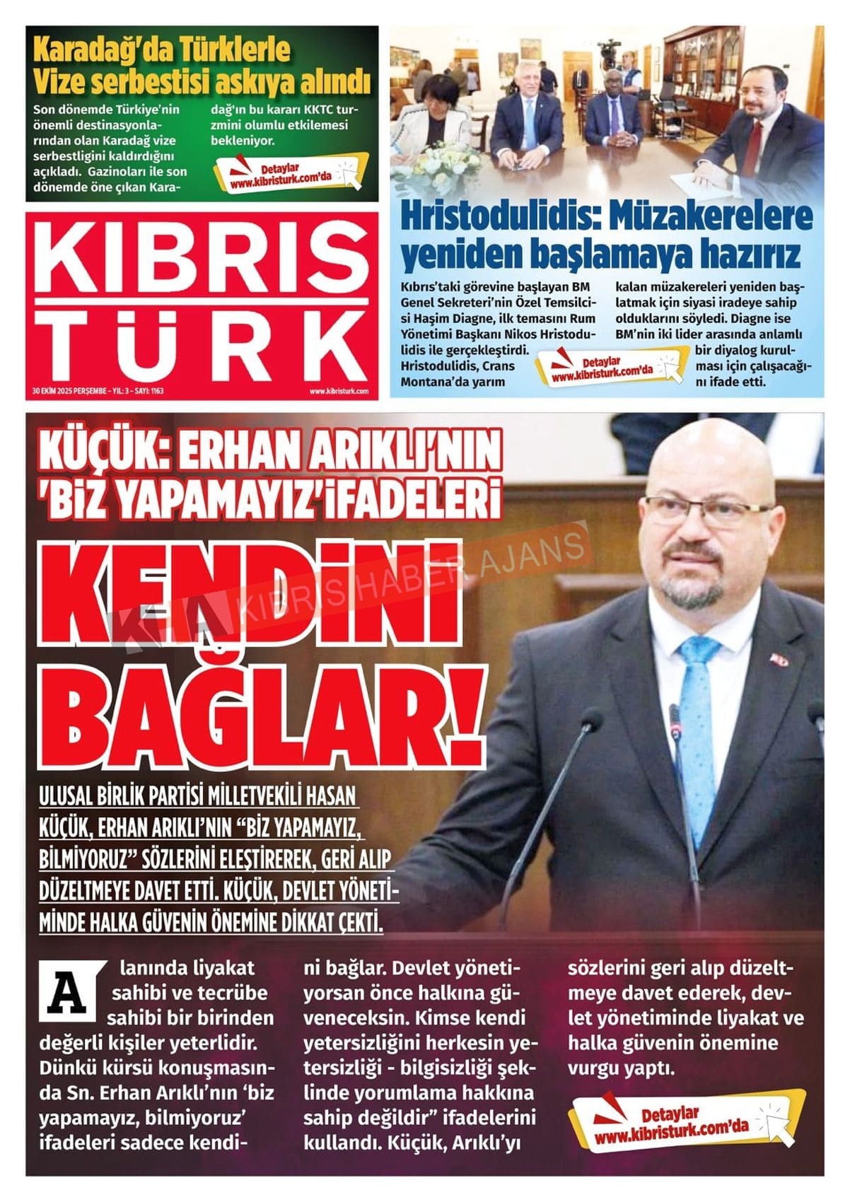 Sitede yayınlanan gazetelerdeki içeriklerden gazete sahipleri sorumludur. Yayınlanan gazeteler ve içeriklerinden Kıbrıs Haber Ajans ve Ajans Cyprus sorumlu tutulamaz.