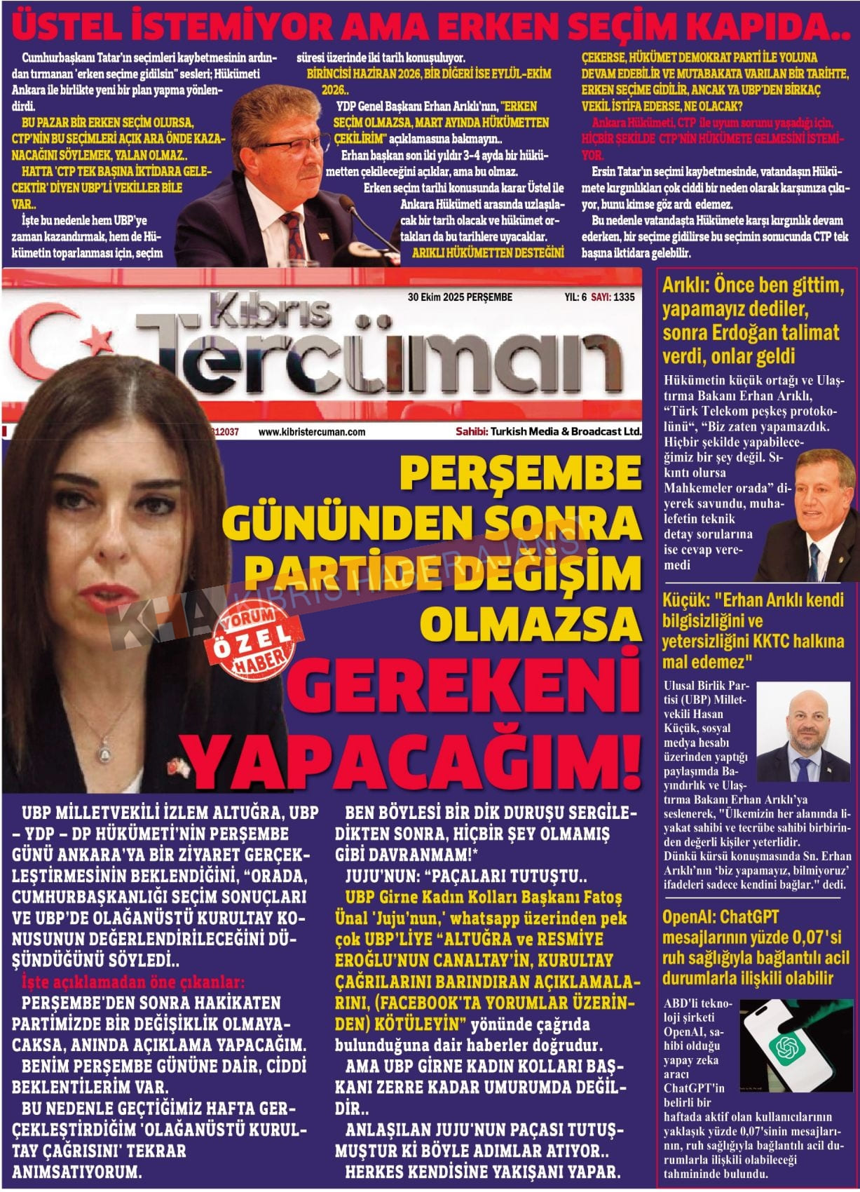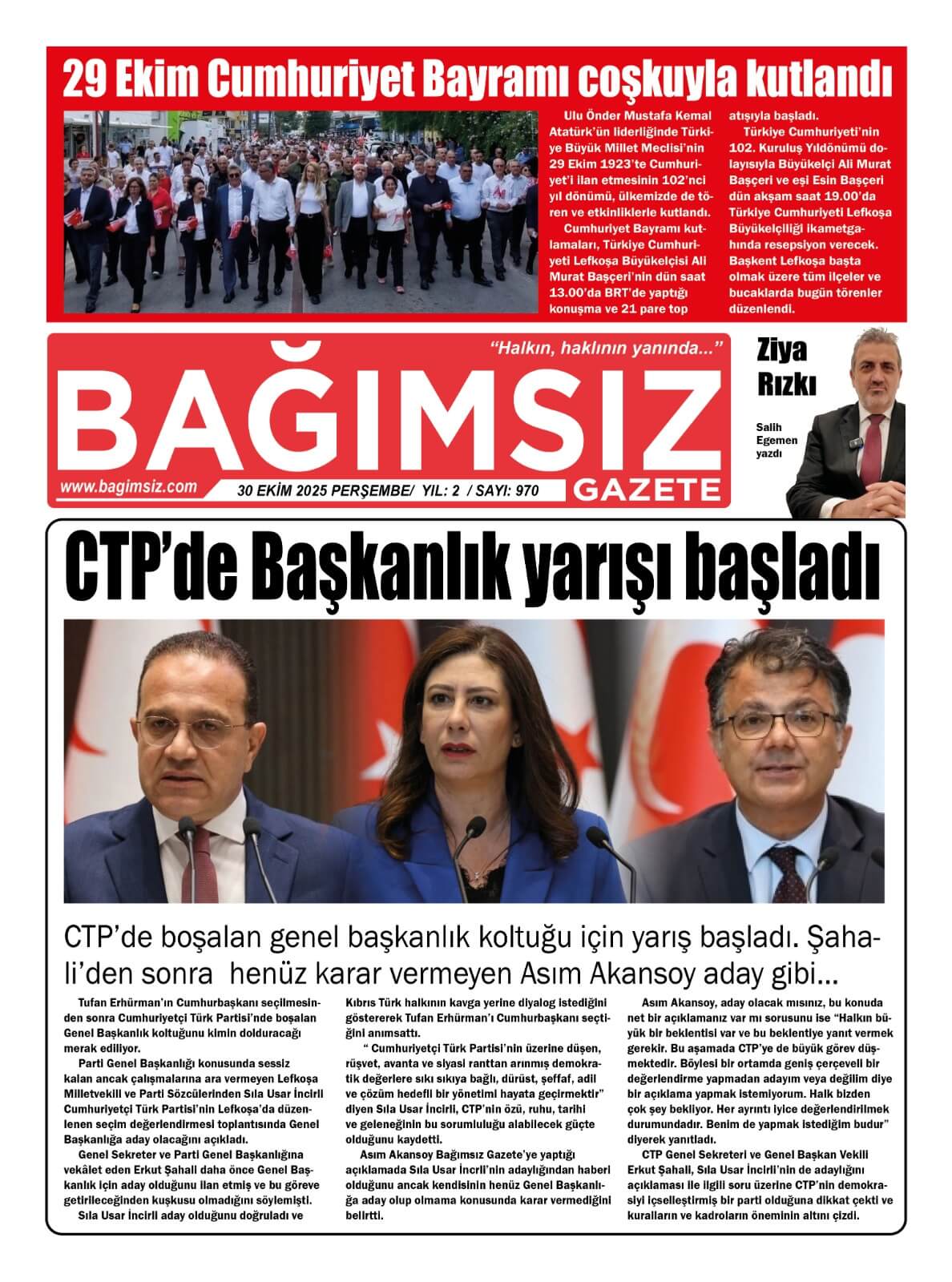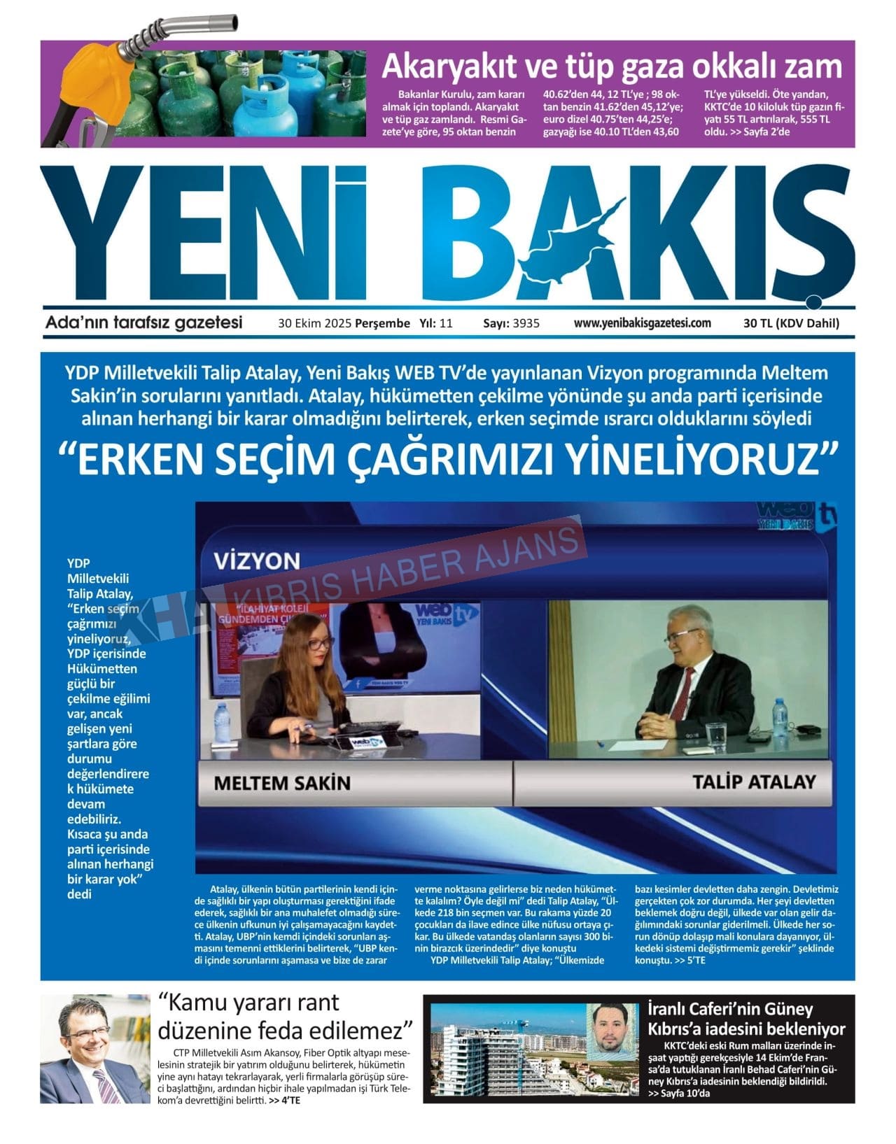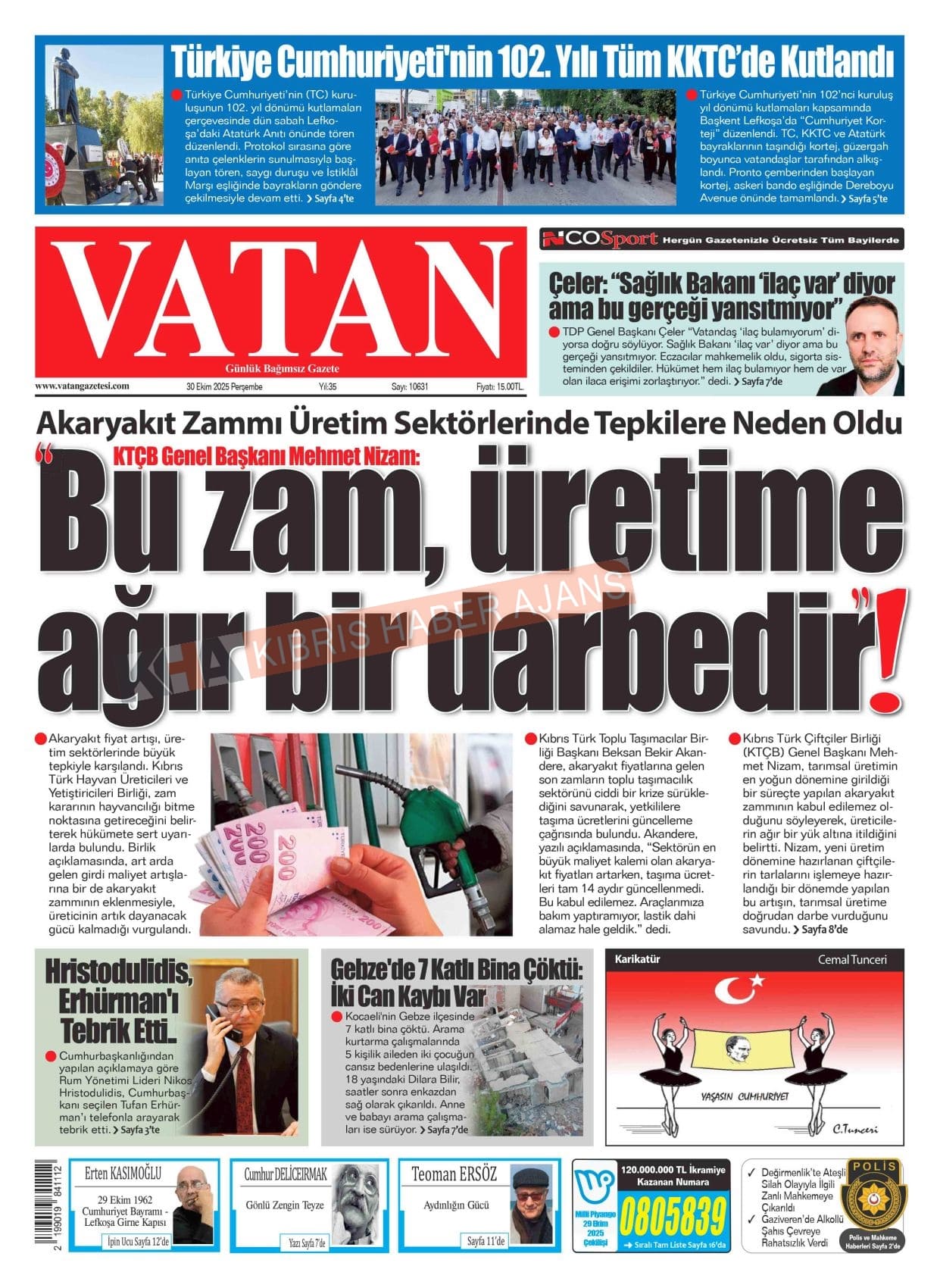 Sitede yayınlanan gazetelerdeki içeriklerden gazete sahipleri sorumludur. Yayınlanan gazeteler ve içeriklerinden Kıbrıs Haber Ajans ve Ajans Cyprus sorumlu tutulamaz.