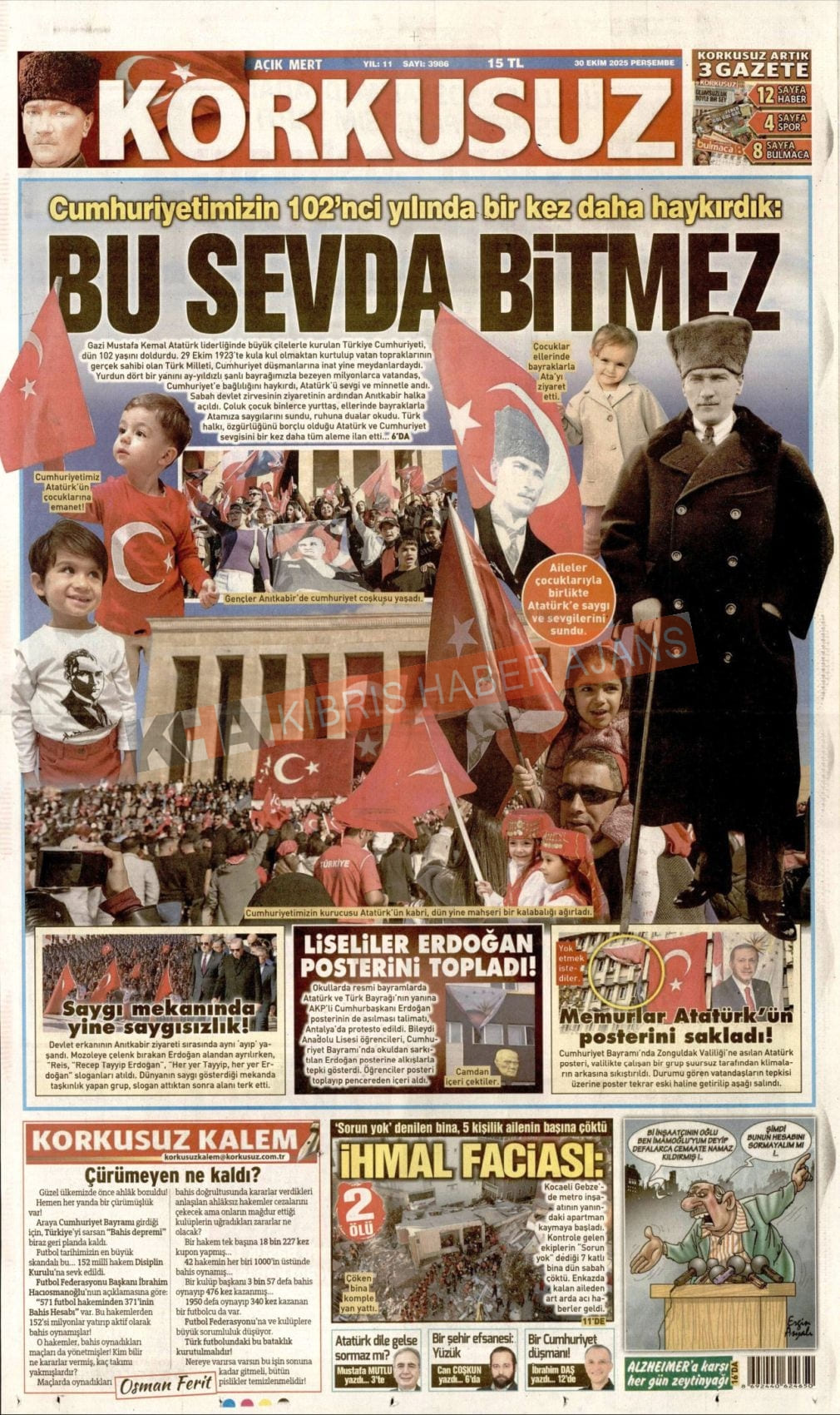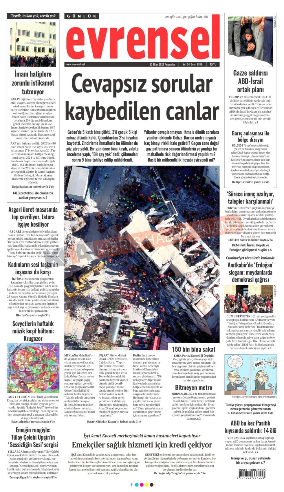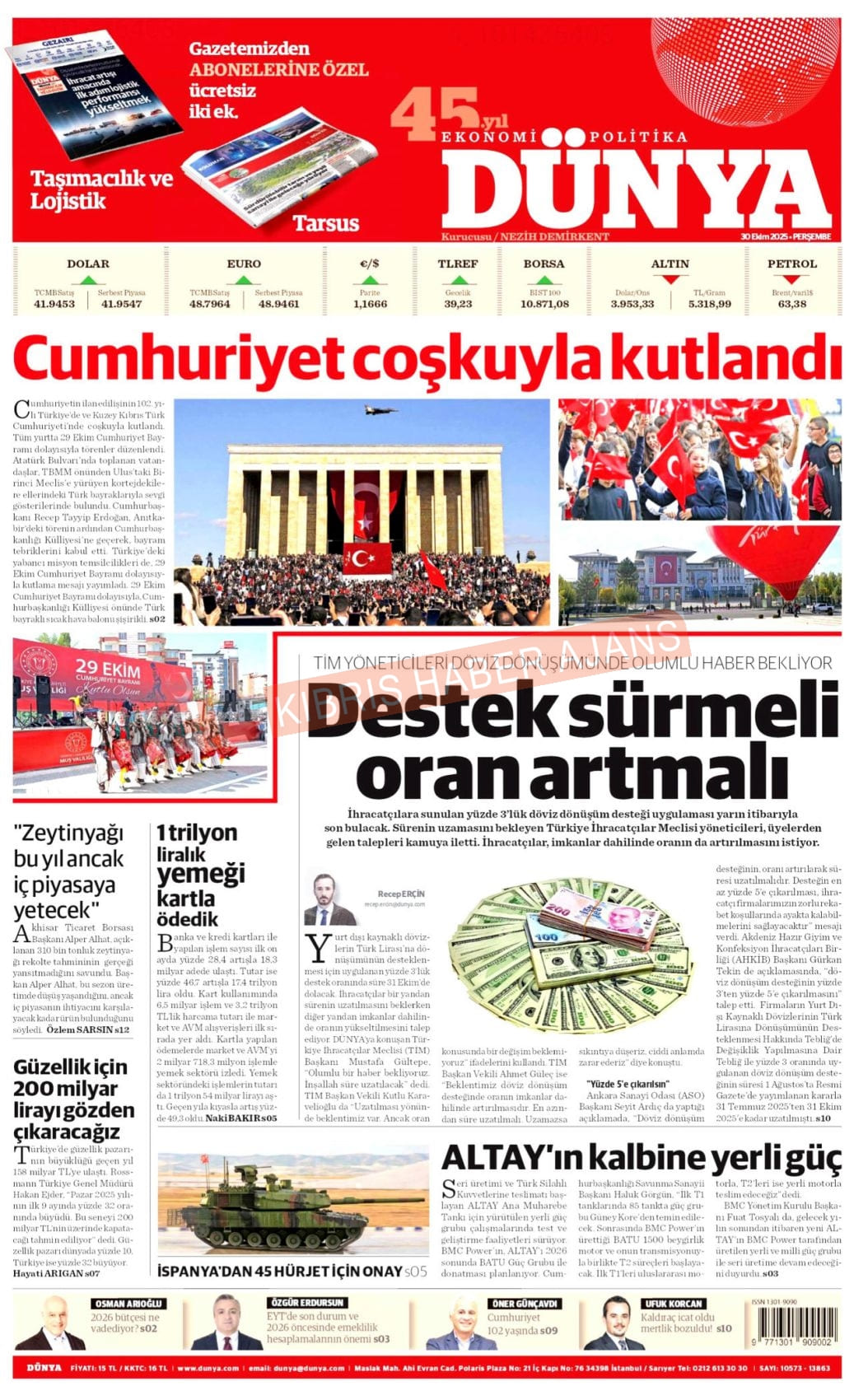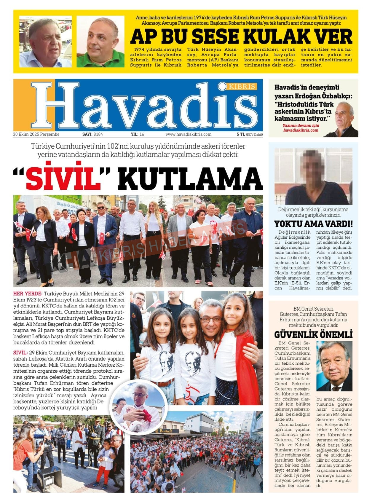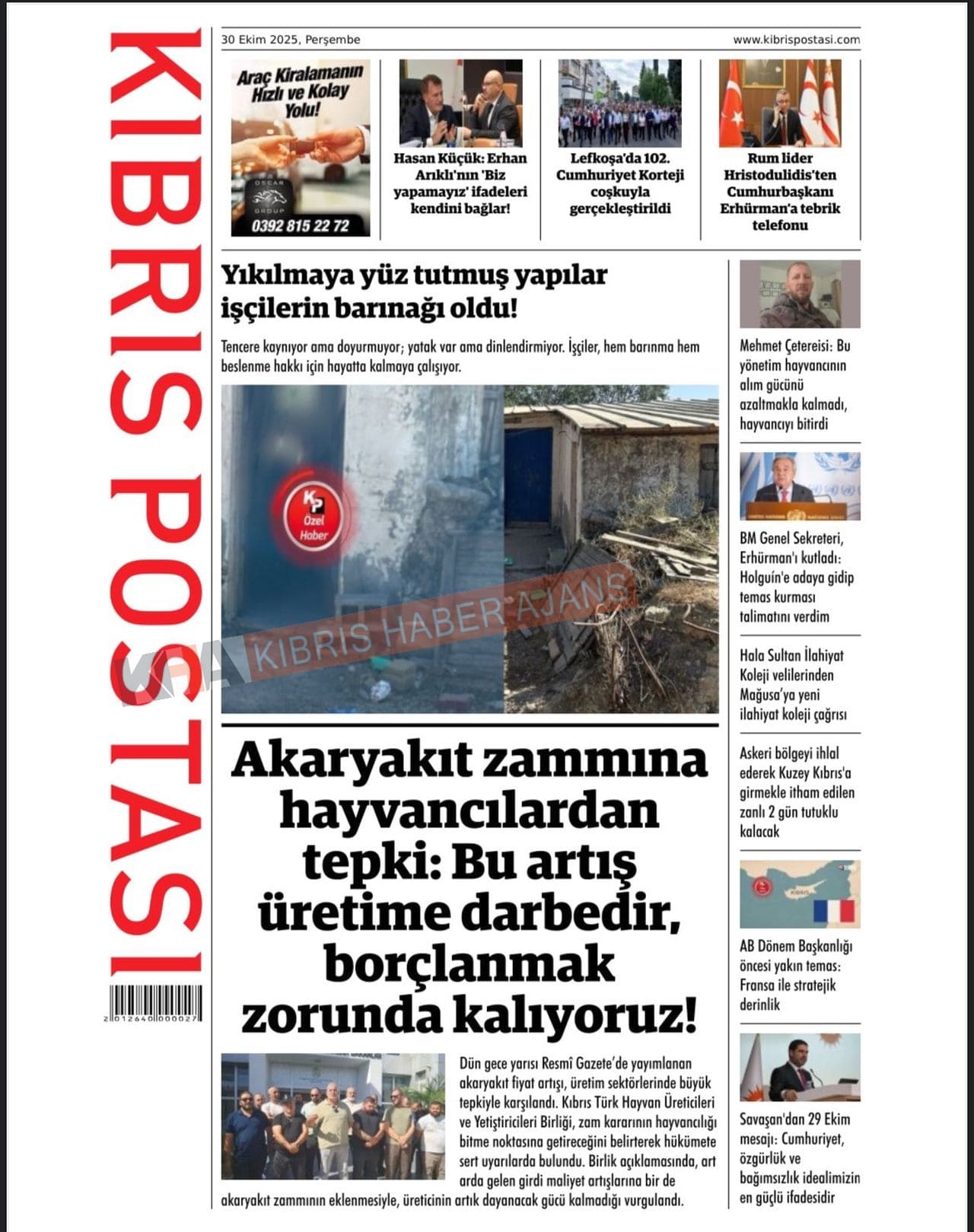 Sitede yayınlanan gazetelerdeki içeriklerden gazete sahipleri sorumludur. Yayınlanan gazeteler ve içeriklerinden Kıbrıs Haber Ajans ve Ajans Cyprus sorumlu tutulamaz.