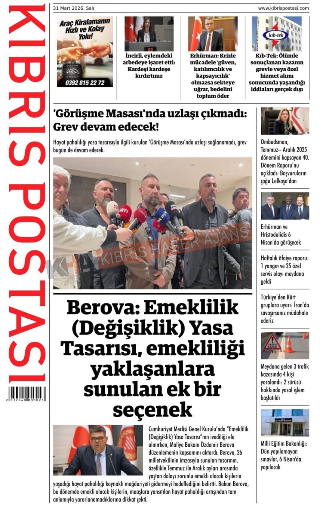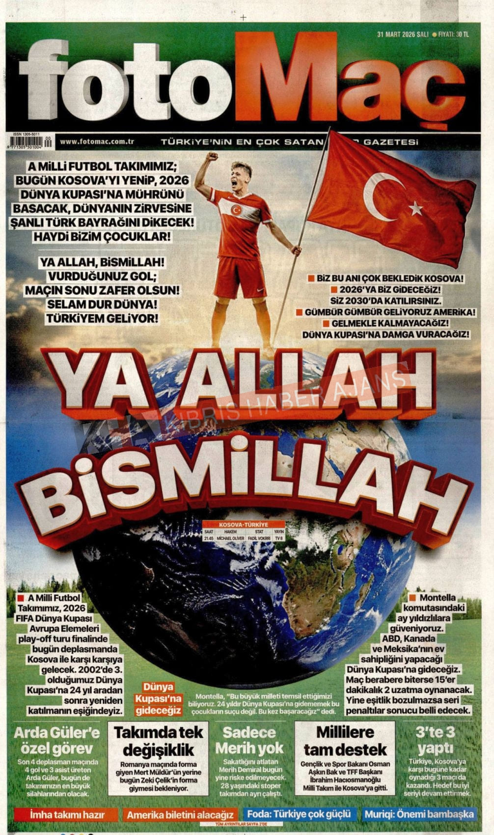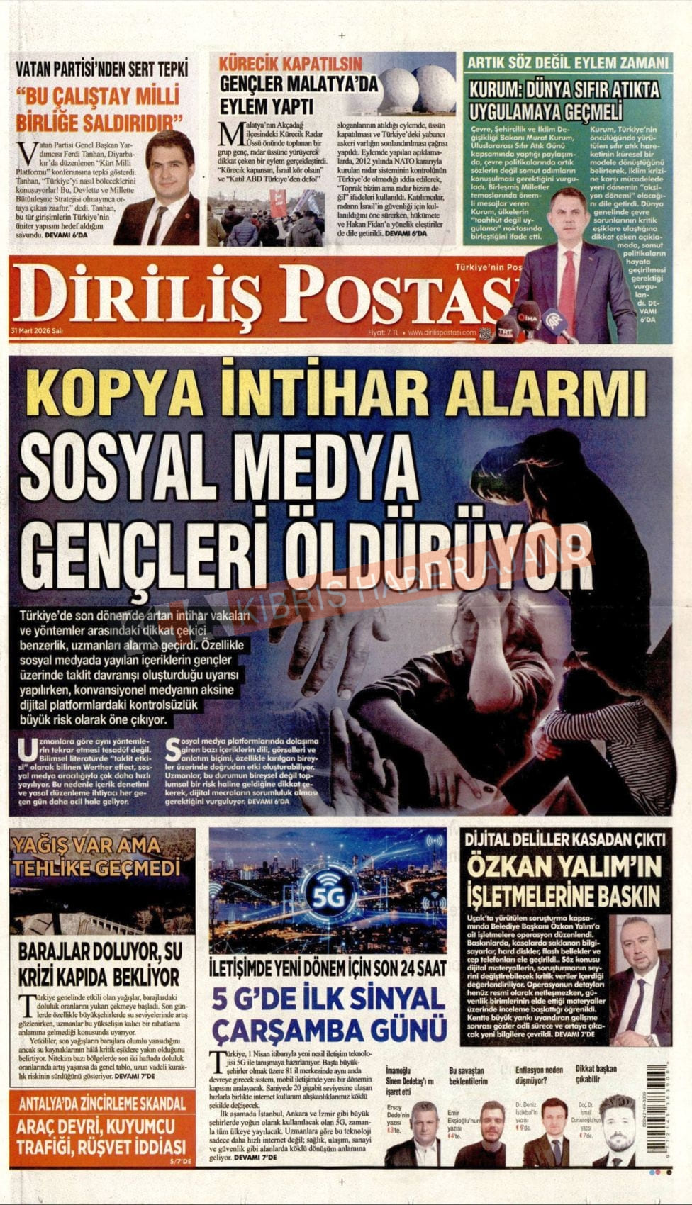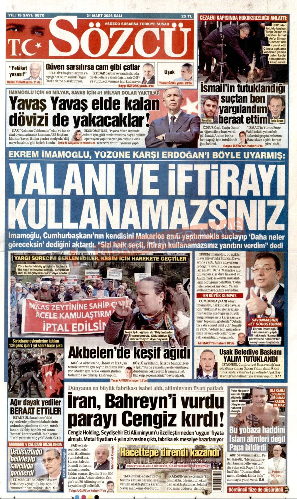 KKTC -TC Gazetelerinde Günün Manşetleri (31 MART 2026)