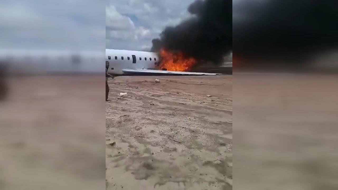 Kaza sonrası alev alan uçaktan yolcular hızla tahliye edildi, olayda hiçbir yolcu yara almadı.