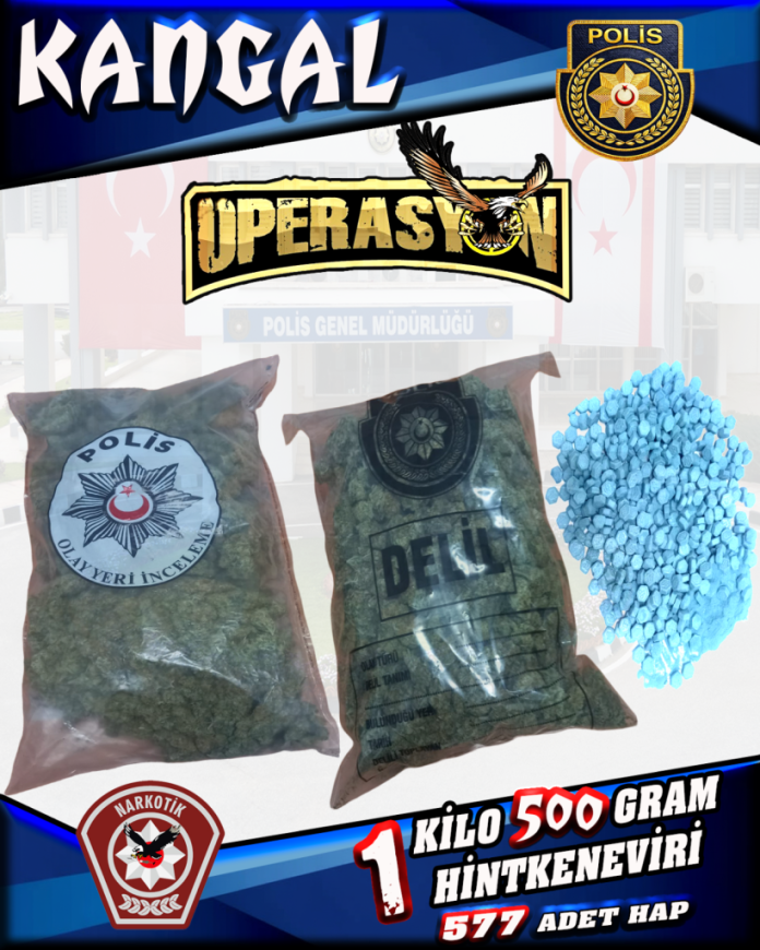 Polis Basın Subaylığı’ndan verilen bilgiye göre, dün gerçekleştirilen operasyonda Güney Kıbrıs’tan gelerek Lokmacı Sınır Kapısı’ndan KKTC’ye giriş yapan J.S. (K-21), suçüstü yakalanarak tutuklandı. Zanlının tasarrufunda yapılan aramada, yaklaşık 1 kilo 500 gram ağırlığında hint keneviri türü uyuşturucu olduğuna inanılan madde, 440 adet tam ve 25 adet yarım mavi renk hap, yaklaşık 20 gram mavi renk toz madde ile 112 adet yeşil reçeteye tabi hap tespit edildi.