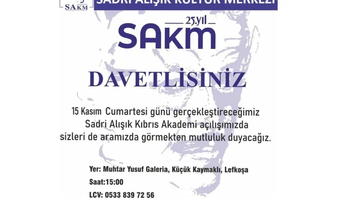 Açıklamada, Sadri Alışık Kültür Merkezi Kıbrıs Akademi’nin Lefkoşa, Girne ve Gazimağusa’da öğrenci kayıtlarının devam ettiği duyuruldu.