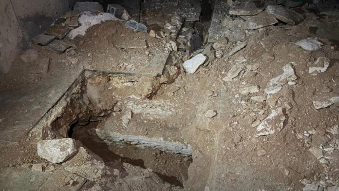 Haberle birlikte yayımlanan bazı fotoğraf karelerinde, metruk bir bina ile içerisinde mezarların bulunduğu belirtilen çukurların yer aldığı görüldü.