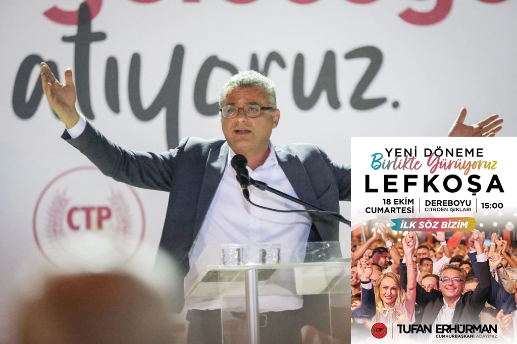 Cumhuriyetçi Türk Partisi (CTP) Cumhurbaşkanı adayı Tufan Erhürman, seçim öncesi son etkinliğini yarın (18 Ekim Cumartesi) saat 15.00’te Lefkoşa Dereboyu’nda gerçekleştirecek.