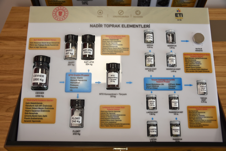 Kızılcaören sahasında seryum, lantan ve neodimyum nadir toprak oksitleri bulunuyor. Bölgede pilot tesis ölçekli üretim çalışmaları sürerken ilk aşamada lantan, seryum, parasemedyum ve neodimyum elementlerinin üretimi hedefleniyor.